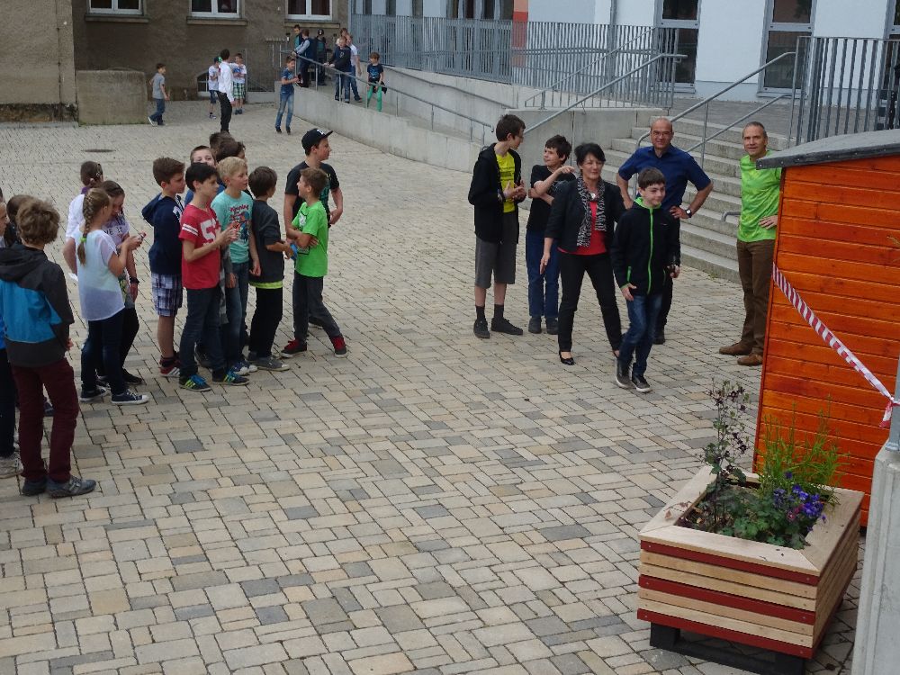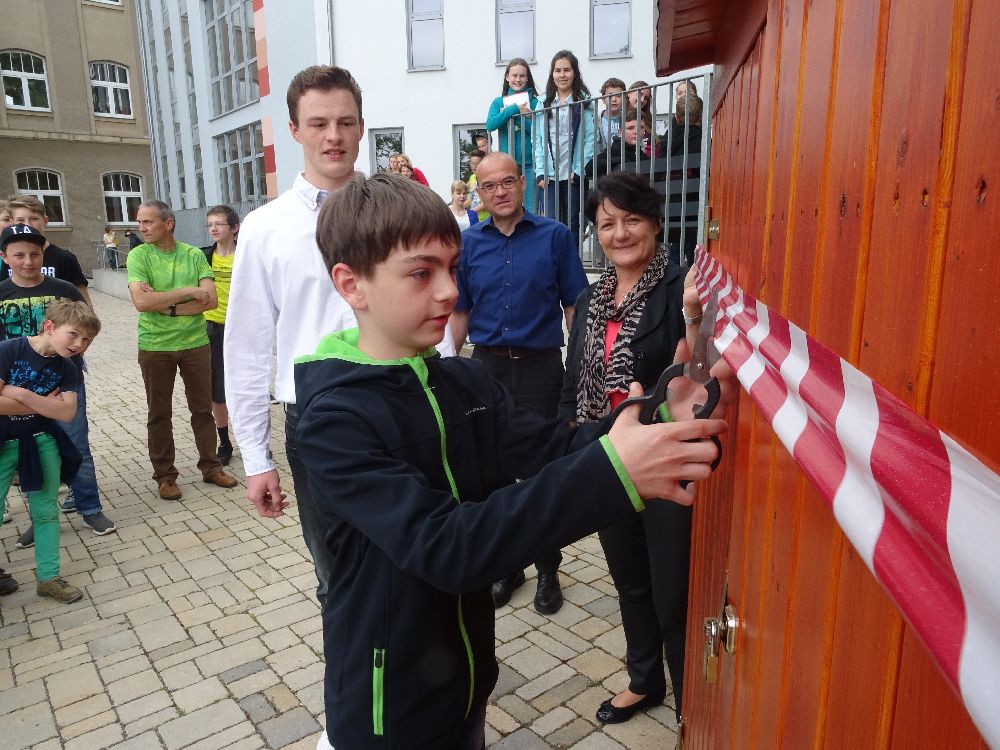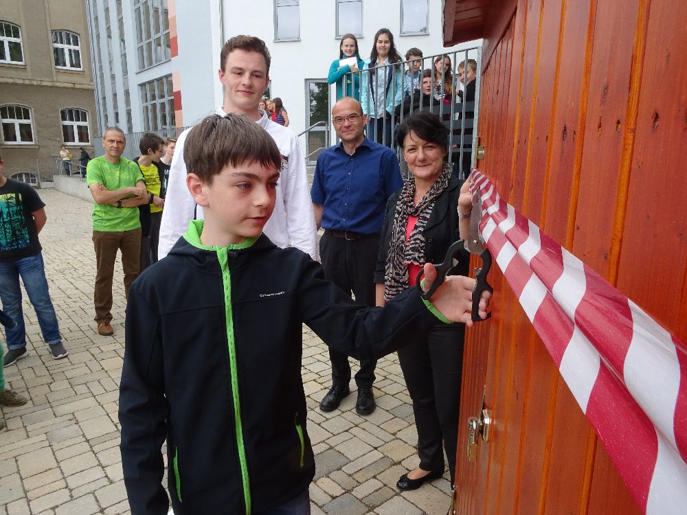 500 € für das Spielgeräte-Häuschen, welche bereits in einer früheren Bewerbungsphase für dieses Projekt erarbeitet wurden, gab nun der Förderverein frei. Am 1. Juni 2015 ging unser Pausenprojekt in die Testphase. Bälle für verschiedene Sportspiele, Tischtennis- und Badmintonschläger, Frisbee-Scheiben und Anderes können nun von 10.55 Uhr (Hofpause) bis ca. 15.00 Uhr selbständig entnommen werden. Ob das auch mit dem Zurückbringen zur Zufriedenheit klappt, wird in den folgenden Wochen von den Initiatoren (Schulleitung, Fachschaft Sport u. Schülerrat) getestet. Tag 1 verlief jedenfalls vielversprechend. Ein Auffüllen verschlissener bzw. fehlender Geräte ist aus Kosten- und erzieherischen Gründen nur zu Beginn eines jeden Schuljahres vorgesehen.