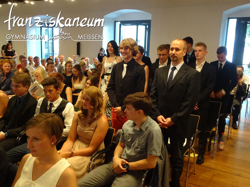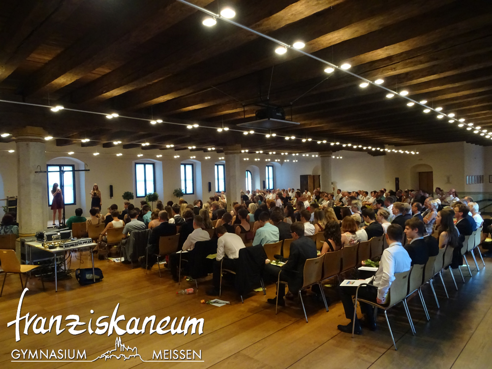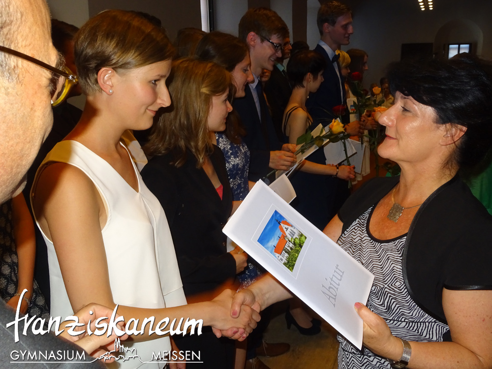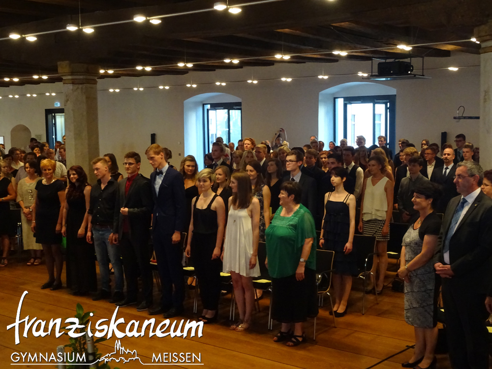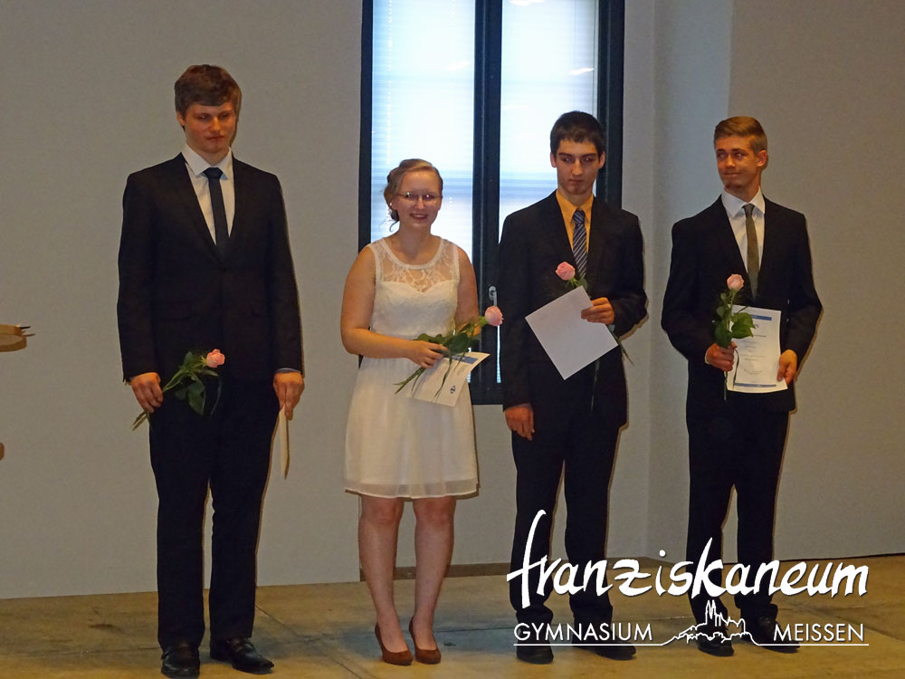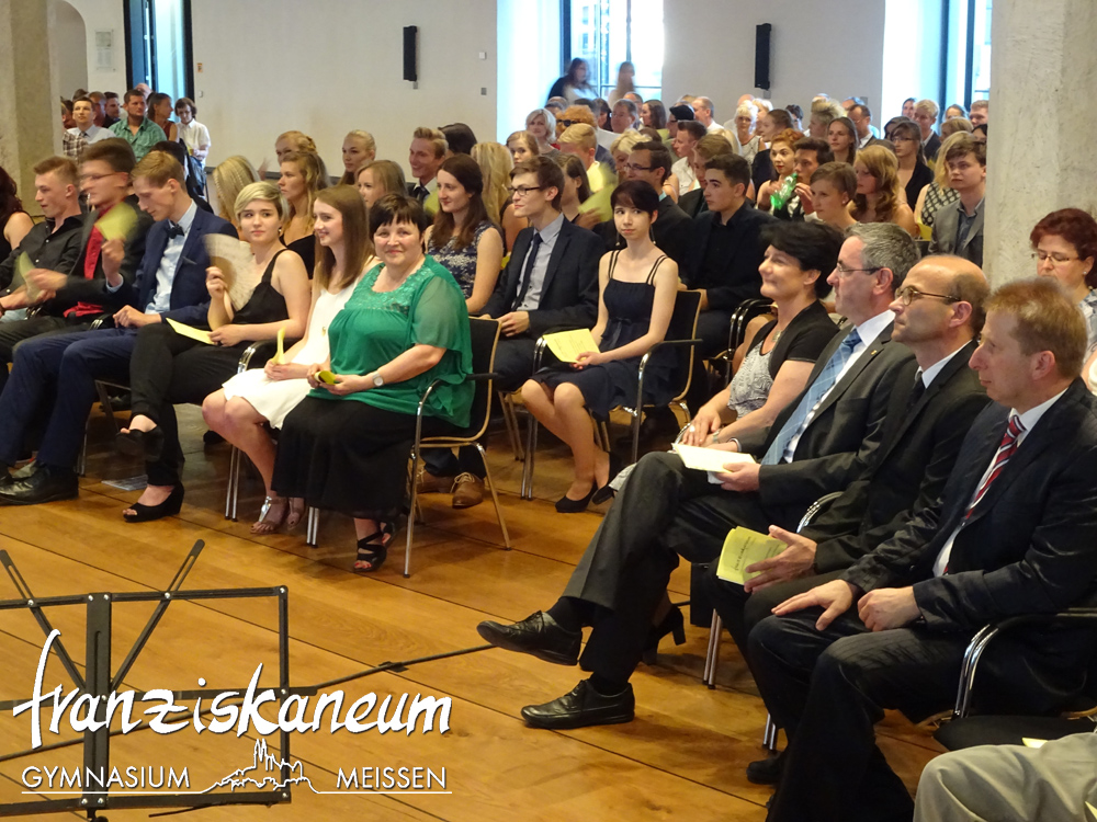Bei hochsommerlichen Temperaturen erhielten die Abiturienten des Jahrgangs 2015 am 02.07.2015 im Meißner Rathaus ihre Reifezeugnisse. Dabei konnte sogar ein Zeugnis mit der Traumnote 1,0 vergeben werden. Insgesamt erreichten 9 Schüler einen Abiturdurchschnitt von 1,5 und besser.