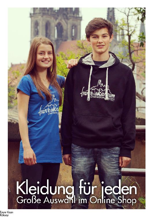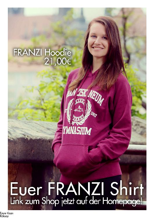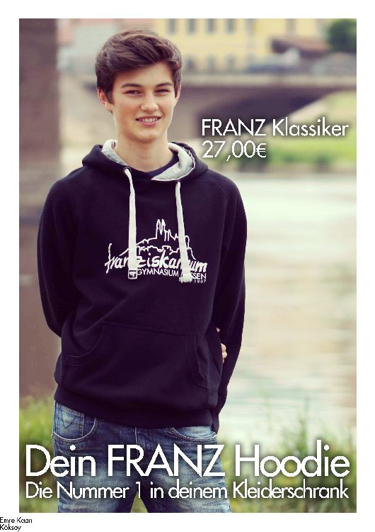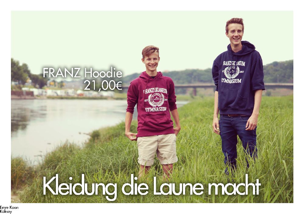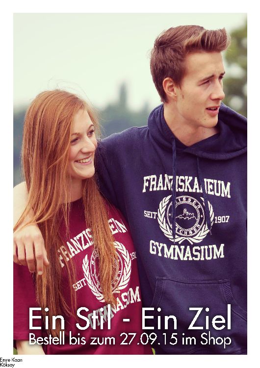 Ab dem 14.09. bis zum 27.09.2015 können ALLE Franziskaner und Lehrer ihr eigenes FranzShirt oder ihren eigenen Franziskaneum Hoodie ONLINE bestellen.