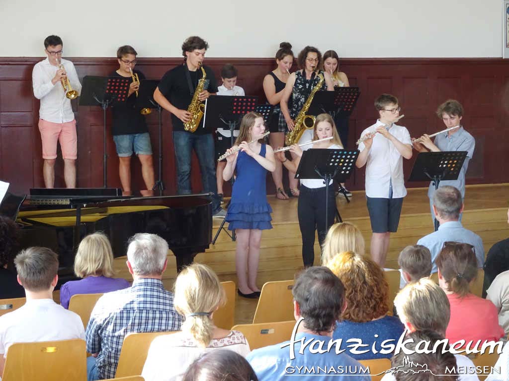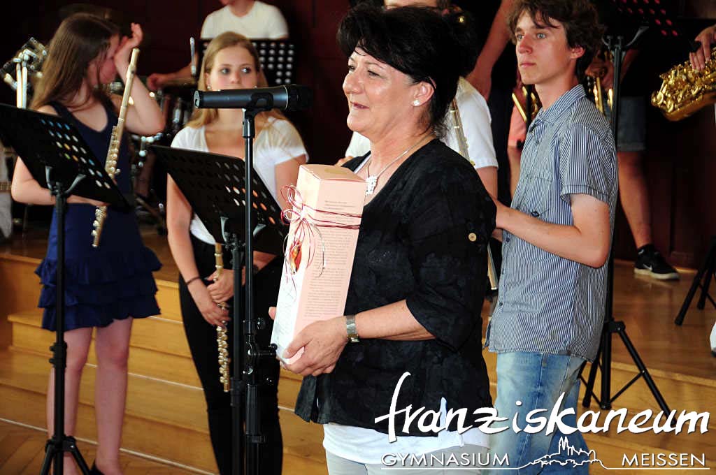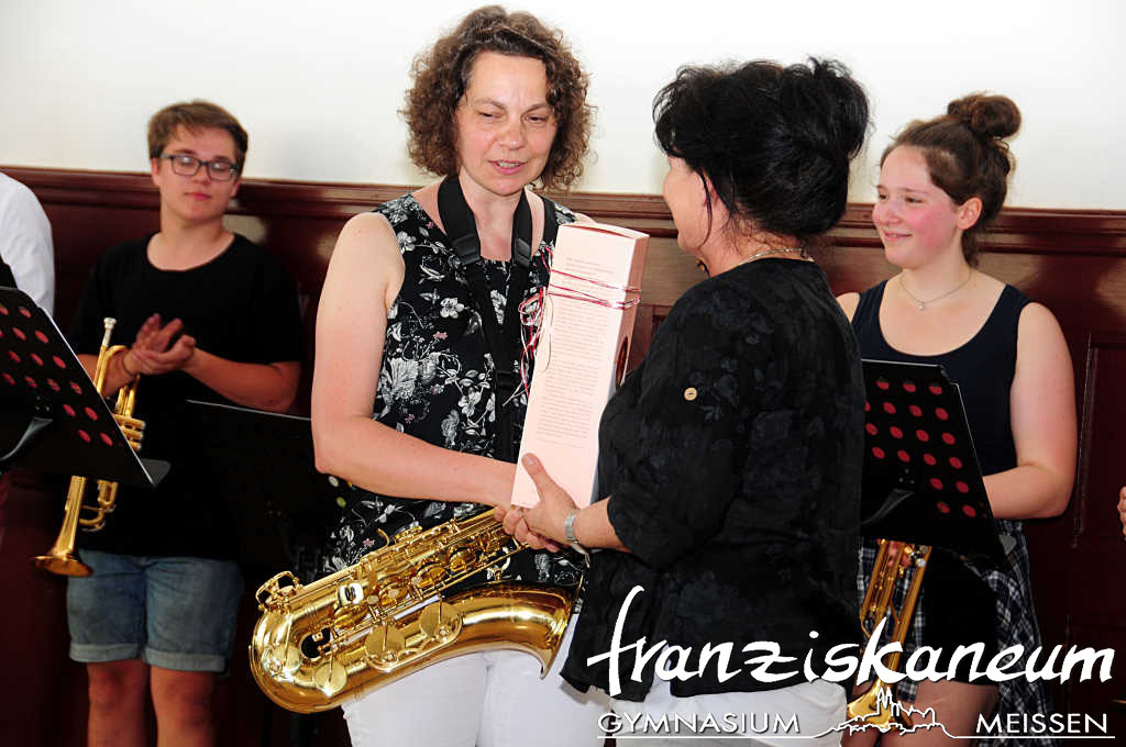 Dem aufmerksamen Publikum wird der Wermutstropfen des Abends nicht entgangen sein, der mit der Verabschiedung der Big Band, unter Leitung von Frau Kretzschmar, durch die Schulleiterin Frau Zimmer verbunden ist.