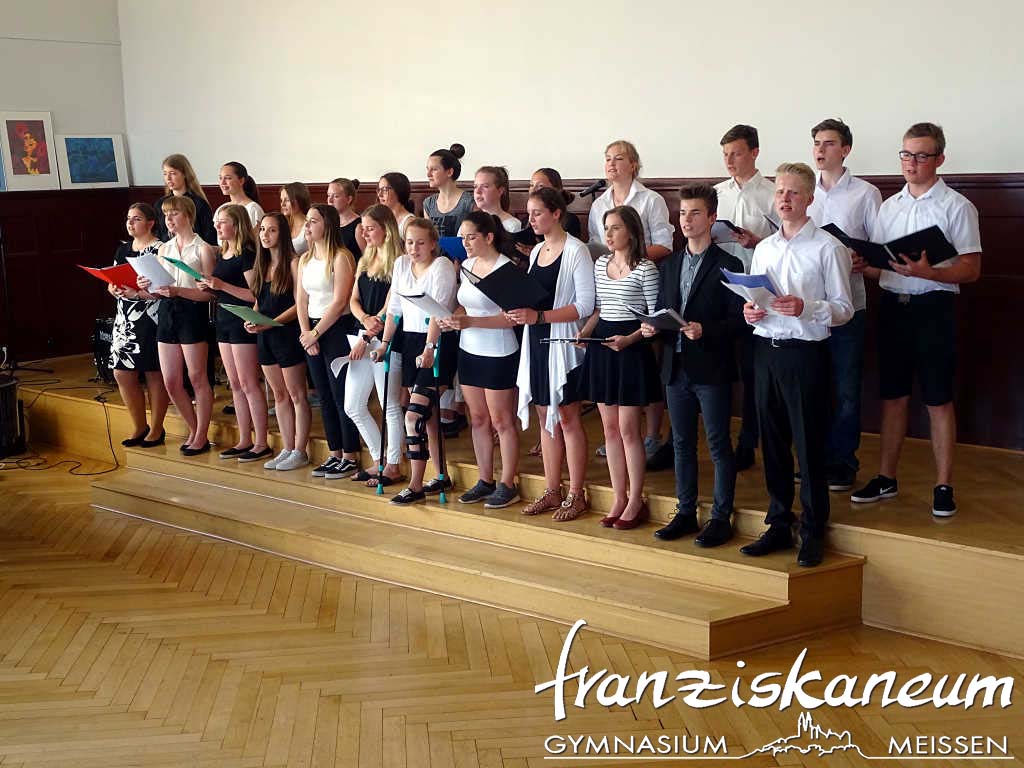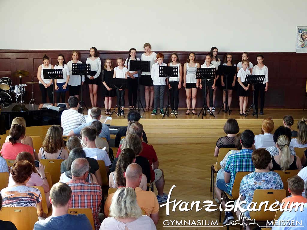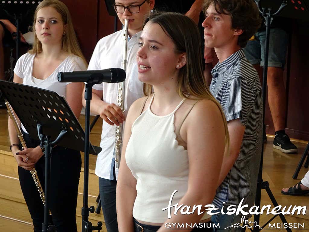 Beginnend mit den flotten Rhythmen der Big Band, die mit Summer Nights auf das Gefühl dieses Sommerabends einstimmte, über die Rückbesinnung auf den Wonnemonat Mai mit dem Lied „Komm lieber Mai …“, die sonore stimmliche Kraft des Country-Songs „Give my Love to Rose“, die beindruckenden Chor-Auftritte, u.a. auch eines kürzlich ins Leben gerufenen Lehrerchors, das Streicher-Ensemble, die Virtuosität der Schüler am Thürmer-Flügel, … wurden die Zuhörer bis zum romantisch besinnlichen „Calling You“ akustisch, je nach Geschmack, für die unterschiedlichen Facetten des Sommers sensibilisiert.