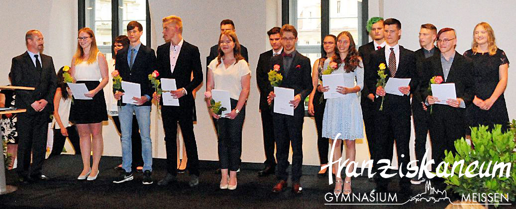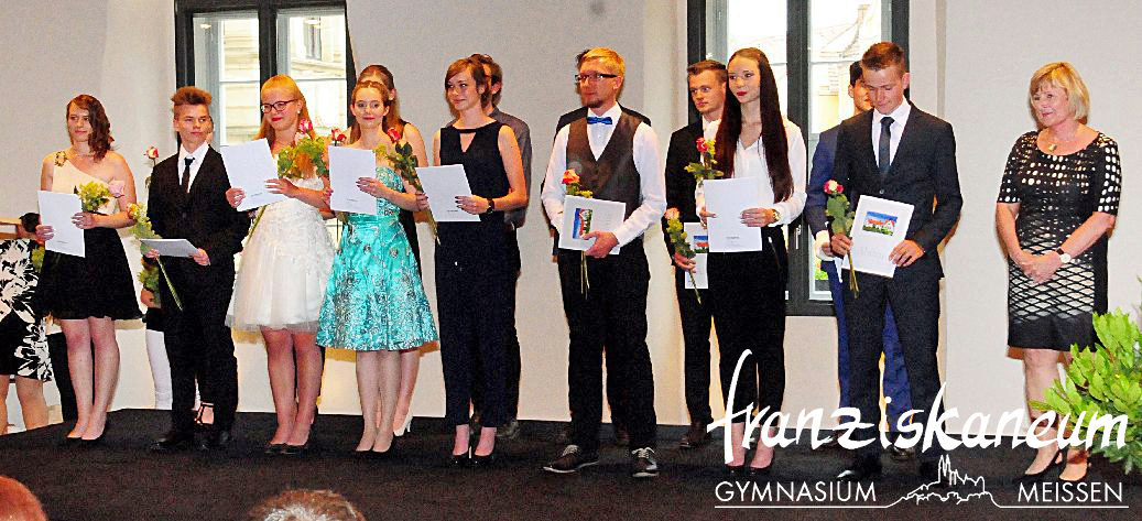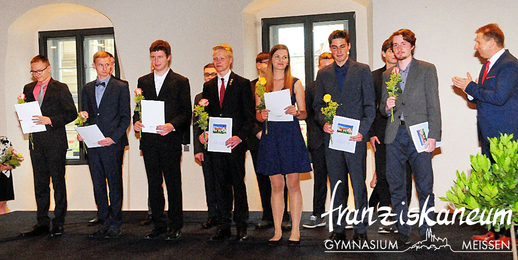 Nach ihrem letzten Schultag, dem verschiedenste sogenannte Mottotage voraus gingen, fand am 16. Juni 2017 die feierliche Zeugnisausgabe im Rathaussaal statt. Drei Schülerinnen des Jahrganges können auf ihrem Abiturzeugnis die Traumnote 1,0 vorweisen. Herzlichen Glückwunsch an Magdalena und Viktoria Gruner und Nadine Zehrfeld.