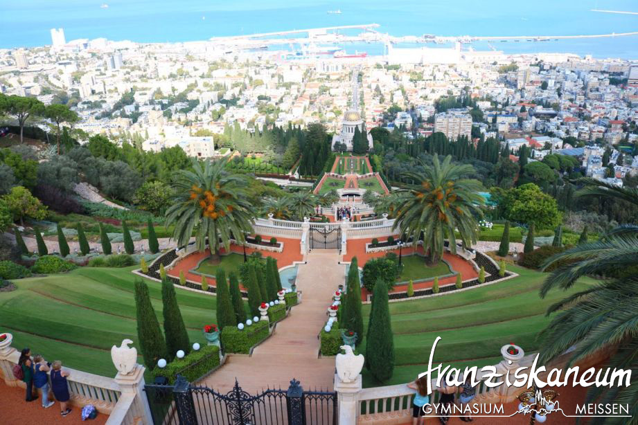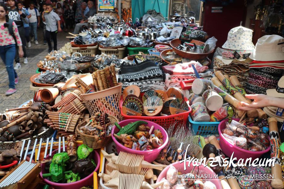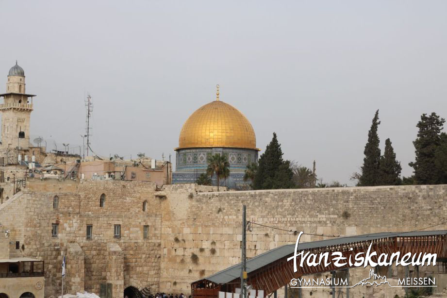 Nach einer kurzen ersten Nacht begannen wir unsere Reise in unserer Partnerschule. Dort bekamen wir viele Eindrücke von dem Schulalltag unserer Israelis. Abends ging es dann zu einer Erkundungstour durch Tel Aviv – Hochhäuser, Buger, Öffnungszeiten bis 23 Uhr. Sehr müde brachen wir dann am nächsten Tag zu einer Rundreise in den Norden Israels auf. Unser erstes Ziel hieß Haifa – eine Stadt mit atemberaubenden Aussichten von den Bahai-Gärten auf das Mittelmeer. Weiter ging es dann in die Hafenstadt Akko, wo wir zum ersten Mal über einen orientalischen Basar spazierten. Bei Sonnenuntergang erreichten wir dann unsere Unterkunft für die nächste Nacht – die Jugendherberge am See Genezareth. Natürlich ließen wir es uns nicht entgehen im See zu baden – mit Blick auf die leuchtende Stadt Tiberias und Syrien. Am nächsten Morgen klingelte bei einigen schon kurz vor sechs der Wecker, um den Sonnenaufgang über dem See zu genießen. Nun ging es weiter zum Toten Meer, am Jordan entlang, durch die israelische Wüste, vorbei an Bananen- und Olivenplantagen. Wisst ihr eigentlich wie es sich anfühlt zu schweben?! So fühlt es sich an, im Toten Meer zu baden – unglaublich. Wer jetzt glaubt der Tag war vorbei, der irrt. Denn nun ging es erst richtig los. Wir feierten mit unseren Israelis Shabbat. Den Samstag gestaltete dann jeder für sich selbst – am Mittelmeer, beim Shoppen oder auf Sightseeingtour. Am Sonntag wartete das nächste Abendteuer auf uns und das hieß „Shalom Jerusalem“. Eine Stadt, in der alle Religionen aufeinander treffen, ein Mischmasch der Kulturen. Bei schönstem Sommerwetter zeigte uns unser israelischer Guide Shmulik die Klagemauer, Grabeskirche und andere Heiligtümer. Erschöpft kamen wir in unserem Hostel an und ließen den Tag mit einem Spaziergang durch die Stadt ausklingen. Ein völlig anderer Ort war für den nächsten Tag unser Ziel- die weltgrößte Holocaust Gedenkstätte- Yad Vashem. Nachdenklich von all den Eindrücken genossen wir die letzten Stunden auf einem Basar in Jerusalem.