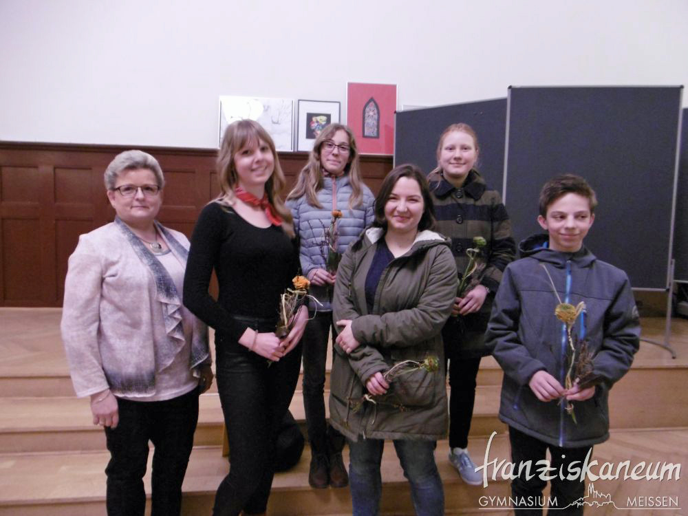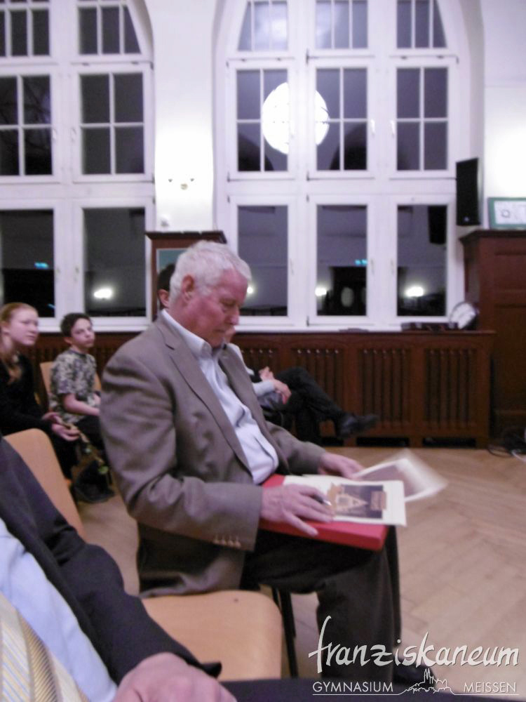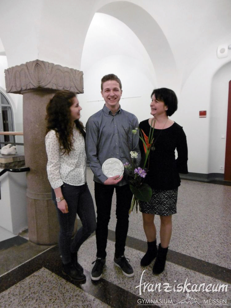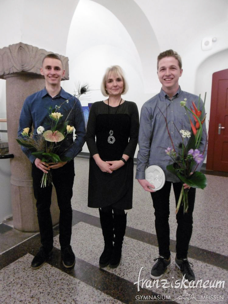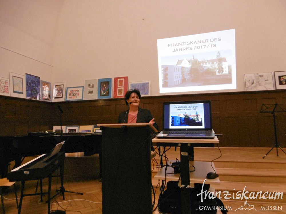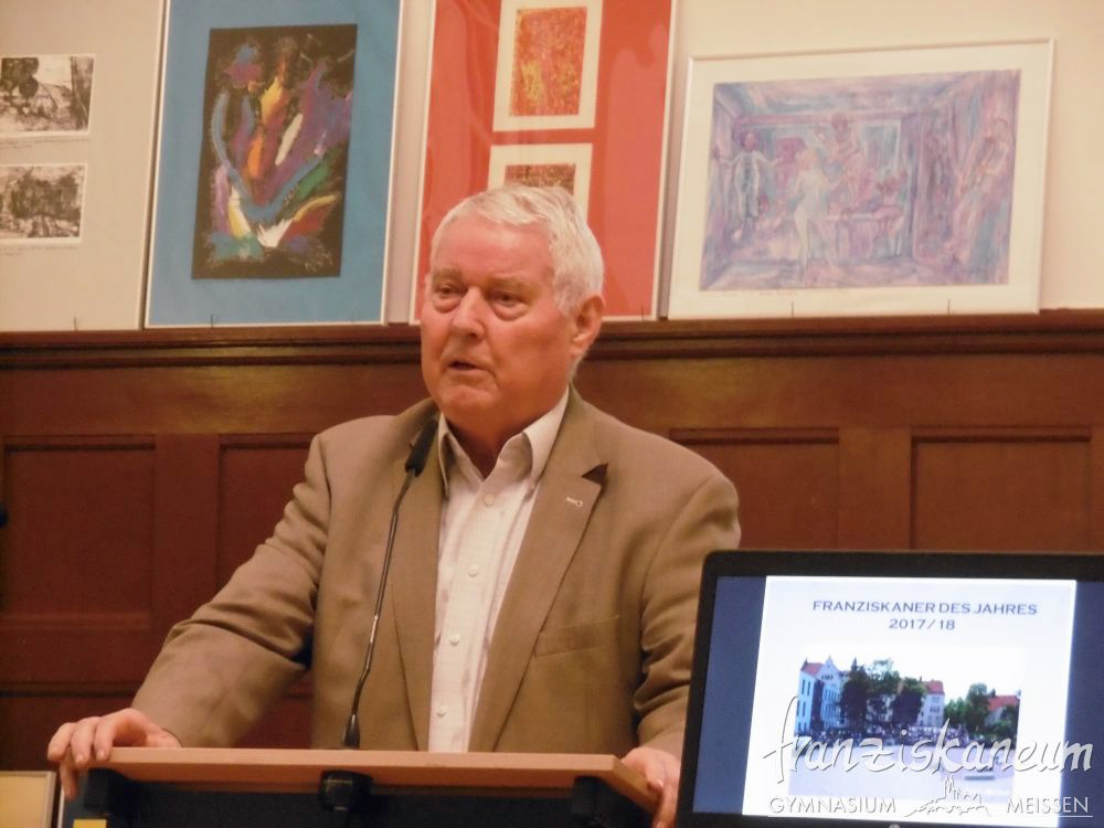 Am Abend des 13.März 2018 wurde zum nunmehr sechsten Mal der Preis „Franziskaner des Jahres“ in der Aula des Franziskaneums Meißen verliehen. Diesen durch den Vorsitzenden des „Vereins zur Förderung des Franziskaneums“, Herrn Uwe Altmann, gestifteten Preis bekommen Schüler oder Lehrer unseres Gymnasiums für besonderes außerunterrichtliches Engagement. Selbst einmal Schüler am heutigen Franziskaneum, möchte Herr Altmann seiner Schule und der Stadt Meißen von Herzen etwas zurückgeben. Drei Nominierte warteten voller Spannung auf die Entscheidung dieses Abends.