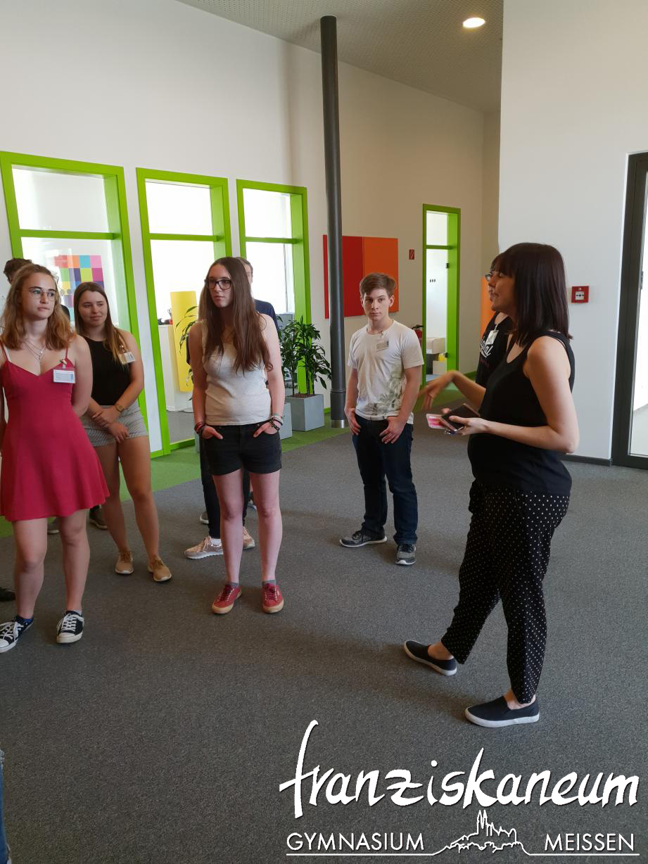 Am 20. April 2018 besuchten die Grundkurse Informatik der Klassenstufe 11 das Unternehmen T-Systems Multimedia Solutions (MMS). Die Schüler erhielten einen Einblick in die Vielfalt der Anwendungsbereiche der Informatik. Es wurden verschiedene Berufsbilder bzw. Tätigkeitsfelder vorgestellt und eine effiziente Arbeitsverteilung innerhalb eines modernen Unternehmens erläutert. Bei der ersten Vorstellung ging es um Konzeption und Marketing im Bereich der Erstellung von Webseiten. Es wurde der Prozess der Erstellung von Consulting über Konzeption und Umsetzung bis hin zu Test und Service dargestellt. Beim zweiten Berufsbild handelte es sich um die Tätigkeiten eines Netzwerkadministrators innerhalb eines großen IT-Unternehmens.