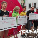 In der Schulwertung d.h. „Welche Schule aktiviert die meisten Teilnehmer?“ erreichte das Franziskaneum einen zweiten Platz (38 Staffeln) hinter der St. Afra Grundschule. Wir erhielten deshalb einen Scheck über 50,- Euro, zur Verwendung im Fachbereich Sport. Alle Schüler gaben Ihr Bestes und vertraten unsere Schule hervorragend. Dafür sportlichen Dank!