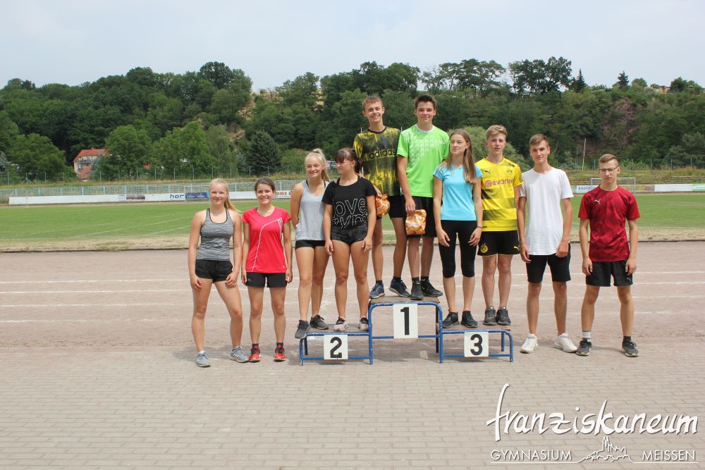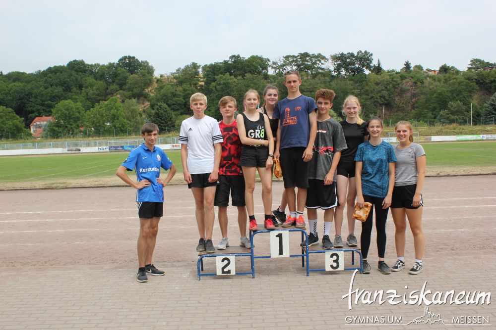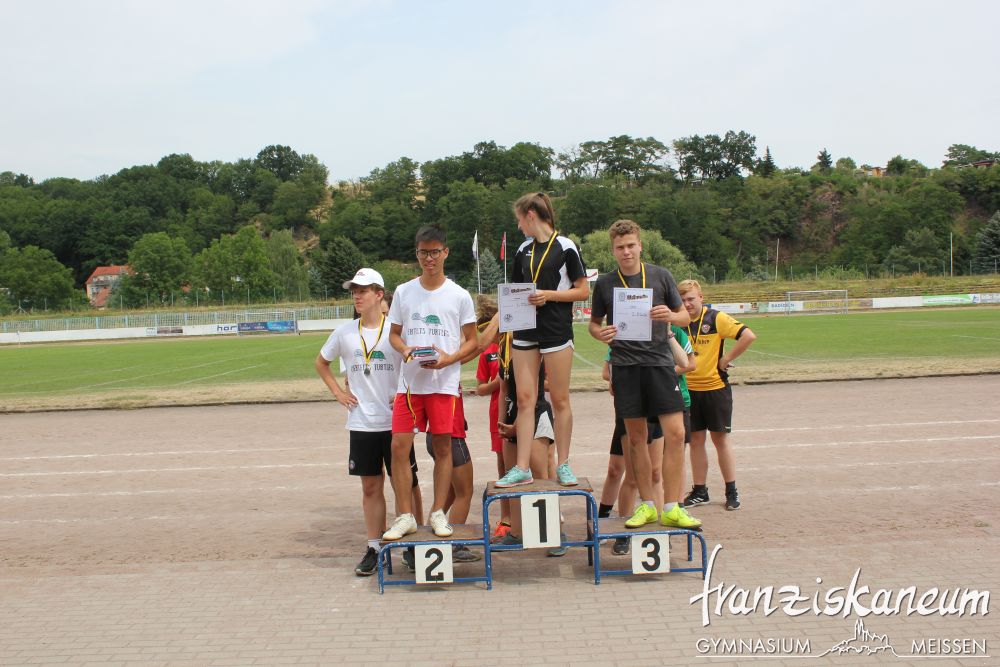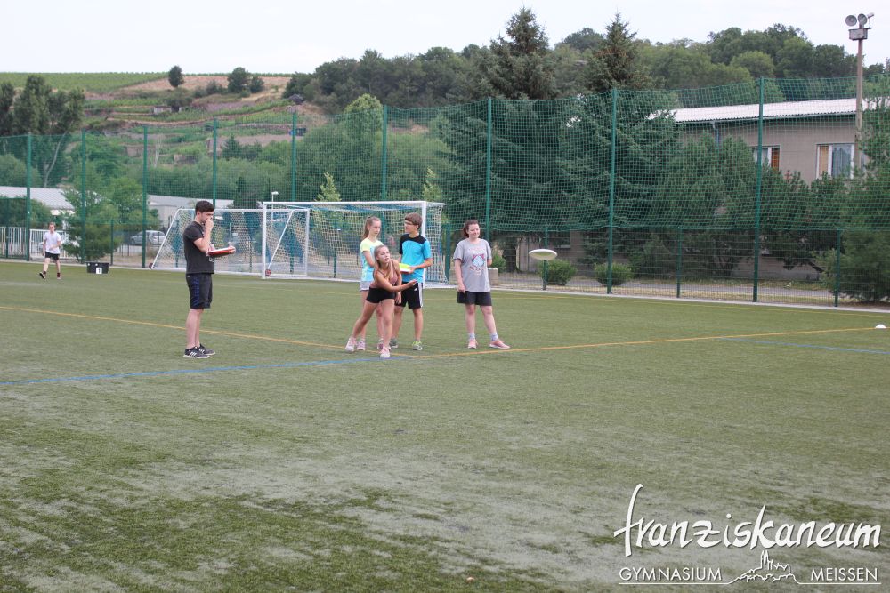 Wie jedes Jahr fand am Montag das Sportfest für die Klassenstufen 8 bis 10 und Dienstag für die Klassenstufen 5 bis 7 statt. In den Leichtathletikdisziplinen Sprint 1000m-Lauf, Sprung und Wurf konnten die Schüler ihre Kräfte messen. Weiterhin standen Fußball, Frisbee und Volleyball in der Kategorie Spiel zur Auswahl.