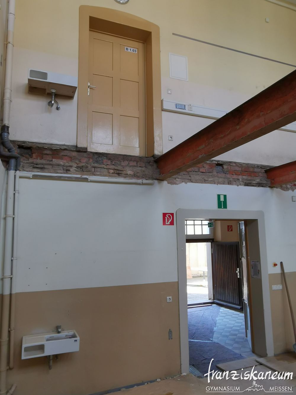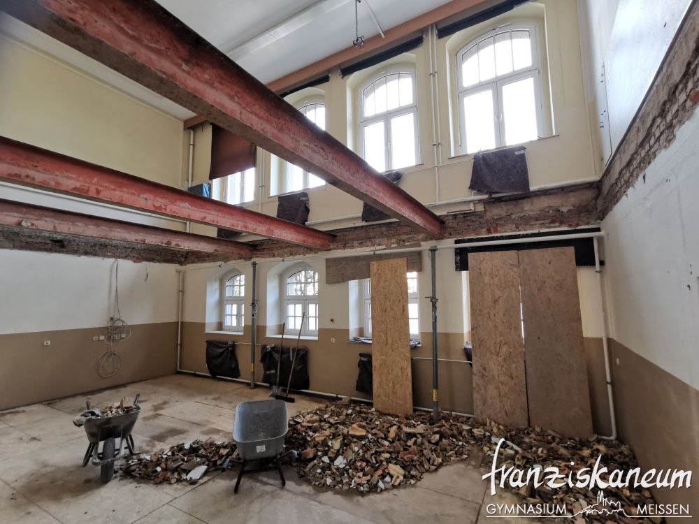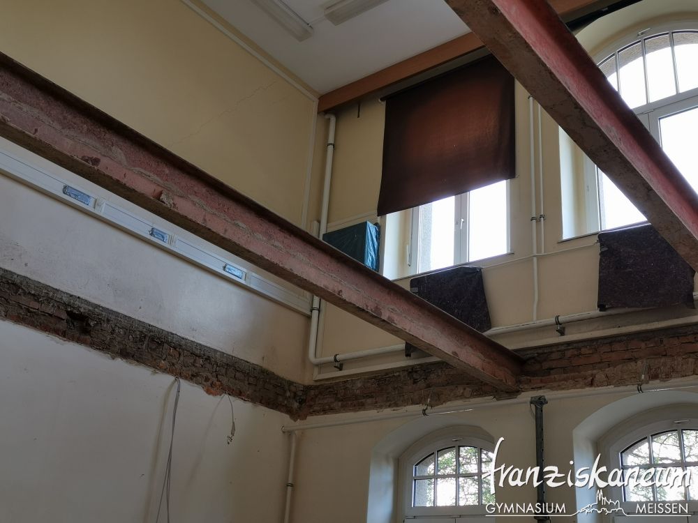 Dafür wurden auf dem ehemaligen Volleyballfeld Container aufgestellt, in denen es acht neue Unterrichtsräume gibt. Zusätzlich finden im Werkenraum des B-Gebäudes sowie dem darüber liegenden Informatikraum Renovierungsarbeiten statt, da aufgrund festgestellter Mängel die Tragfähigkeit der Decke nicht mehr gewährleistet werden kann. Hier finden sie einige Impressionen der aktuellen Vorgänge in unserer Schule.
