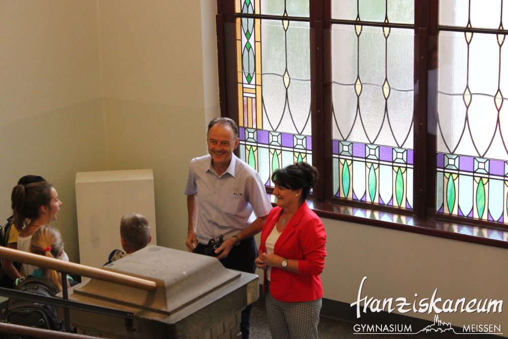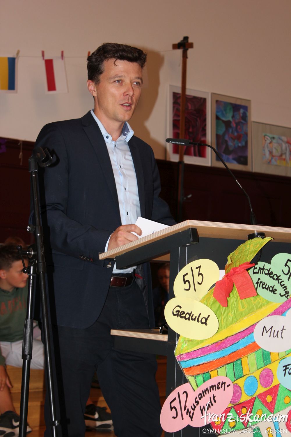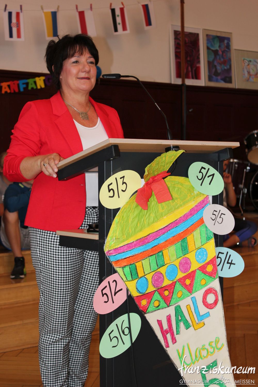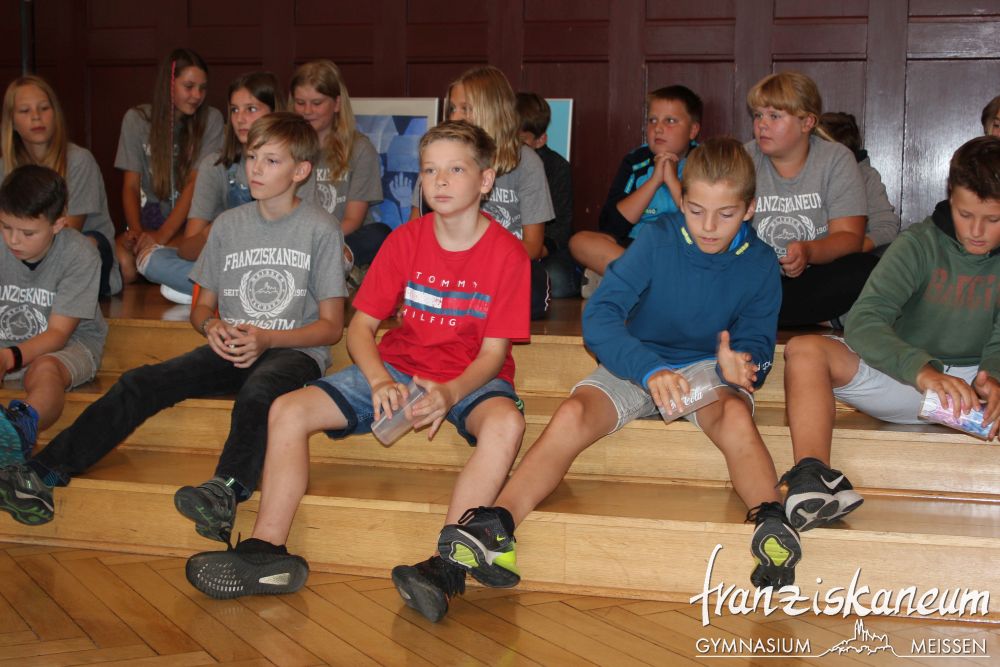 Auch in diesem Schuljahr durften wir wieder sechs neue fünfte Klassen mit insgesamt 157 Schülern an unserer Schule begrüßen. Die Tradition, dass die Schüler der 12. Klasse die „Kleinen“ in Empfang nehmen und gemeinsam festlich in die Aula einziehen, wurde auch dieses Jahr beibehalten. Hier wurden sie herzlichst von der Schulleitung, ihren Klassenlehrern sowie ihren Patenklassen und Bürgermeister Markus Renner, als Vertreter der Stadt, begrüßt.