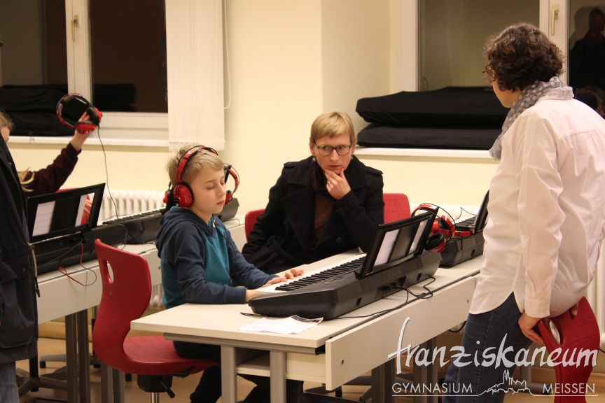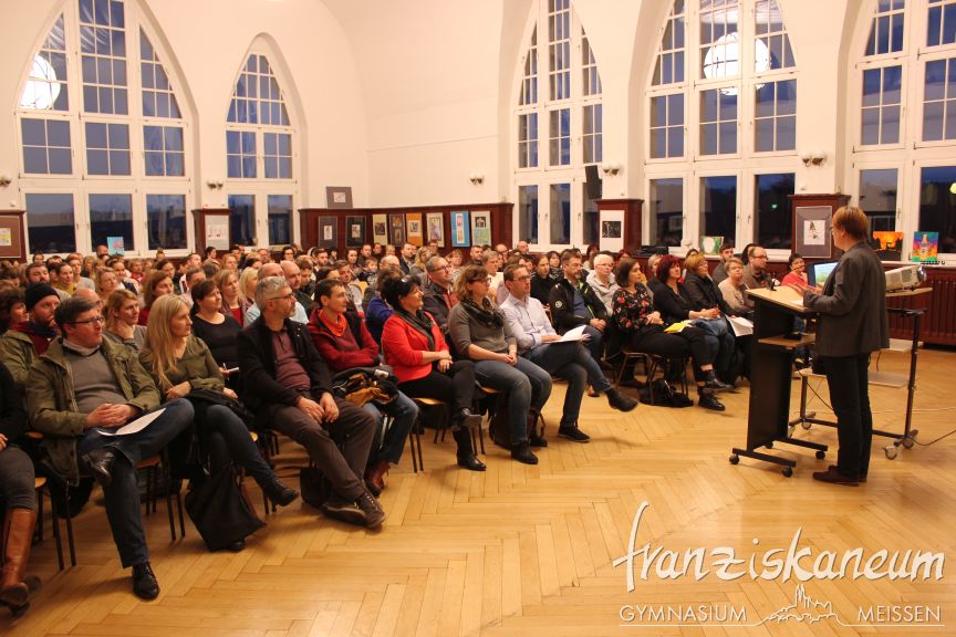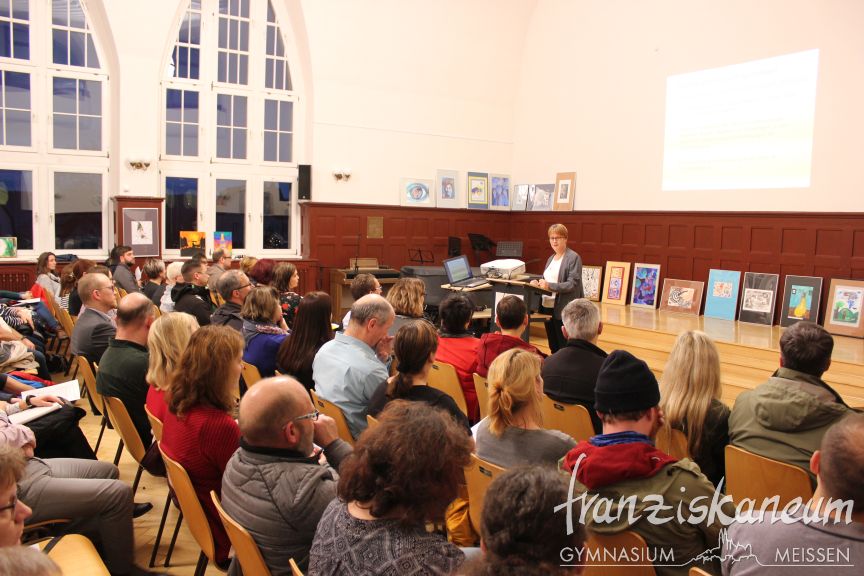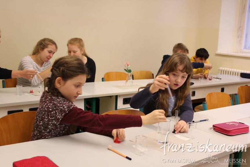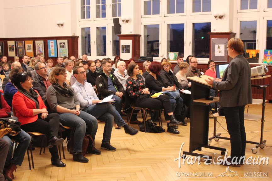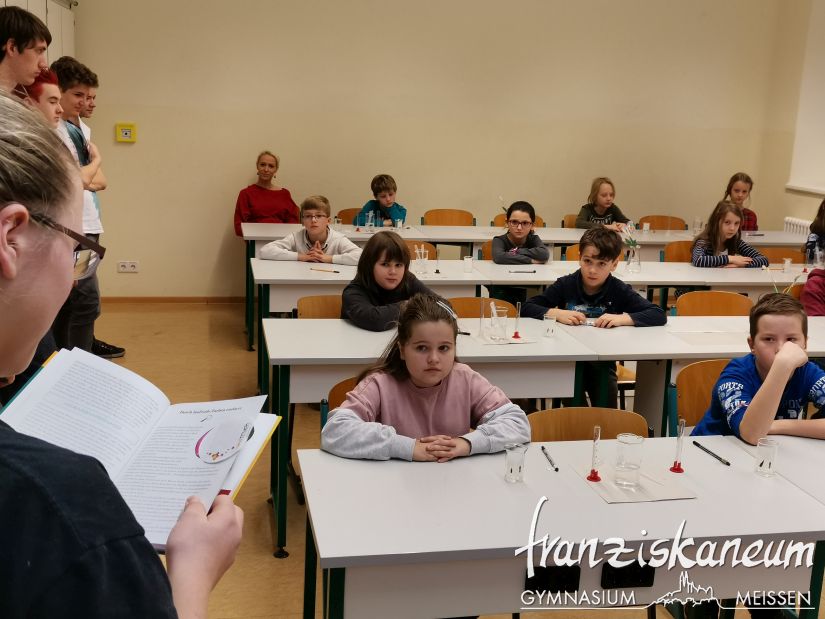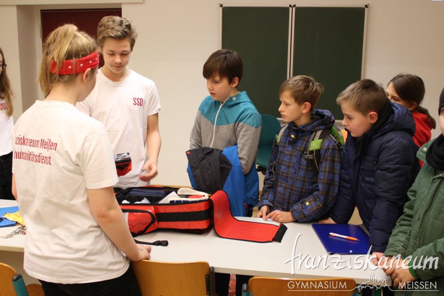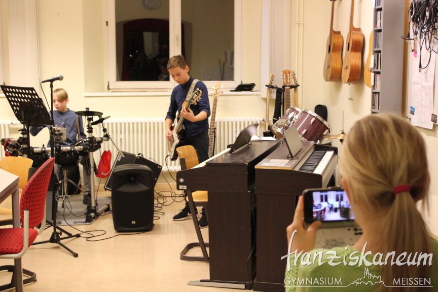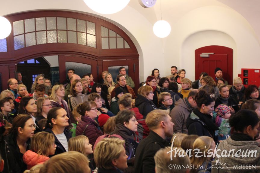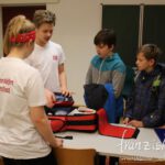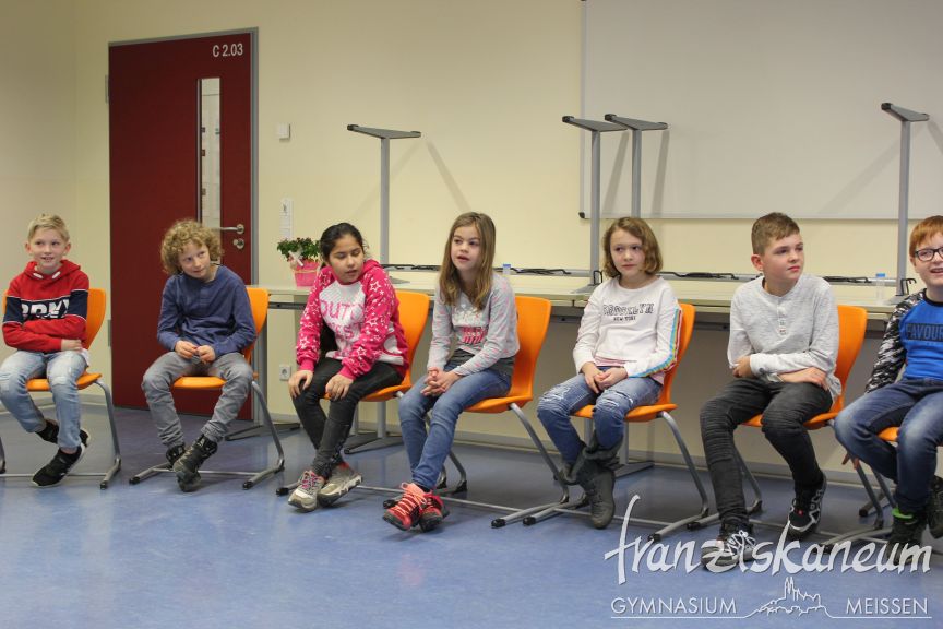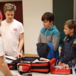 Zu Beginn des Nachmittags fand in der Aula eine Informationsveranstaltung für die Eltern statt. Anschließend fieberten die Eltern beim Zweifelderballspiel der fünften Klassen mit oder erkundeten die Schule gemeinsam mit ihren Kindern und besuchten die einzelnen Fachräume. Dort fanden die Kinder die verschiedensten Aktivitäten zum Zuhören, Hinschauen und Ausprobieren. So lernten sie unter anderem einiges über die Sanitäter, freundeten sich mit den unterschiedlichen Fremdsprachen an oder konnten in den Musikräumen ihr Können auf die Probe stellen.