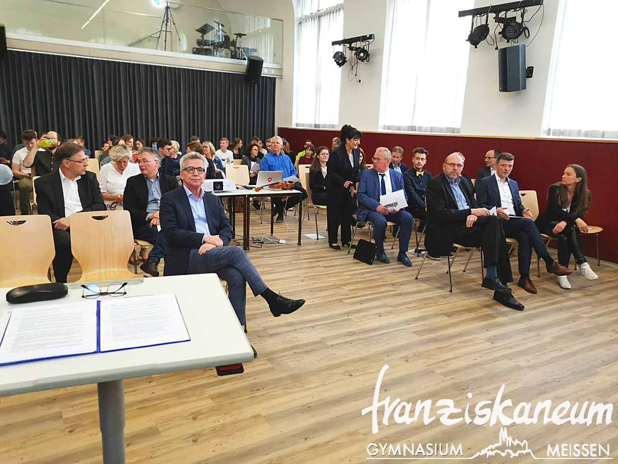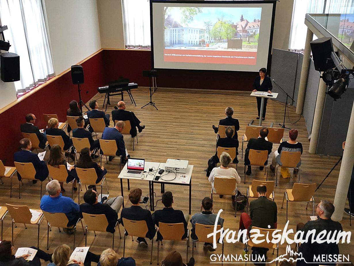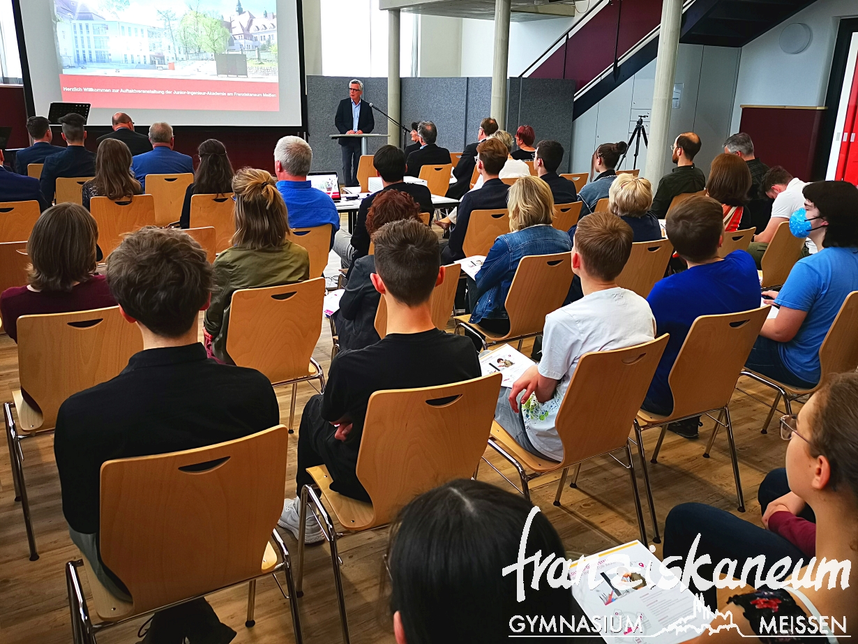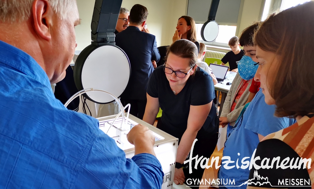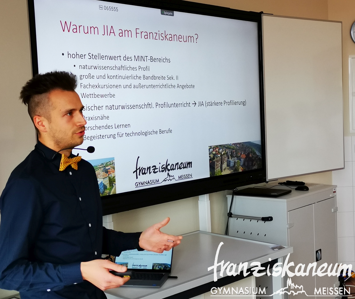Seit dem Schuljahr 2021/22 gehört das Franziskaneum zu einer von deutschlandweit 100 Schulen, an der die Junior-Ingenieur-Akademie (JIA) angesiedelt ist. Das von der Telekom-Stiftung entwickelte Programm dient dazu, Schulen dabei zu unterstützen, junge Menschen für naturwissenschaftliche Berufe zu begeistern. Am Mittwoch, dem 4.05.2022, wurde nun die JIA am Franziskaneum (pandemiebedingt) nachträglich eröffnet. Geladen waren u. a. Stiftungsvorsitzender Thomas de Maizière, Oberbürgermeister Olaf Raschke sowie Lehrer und Schüler.