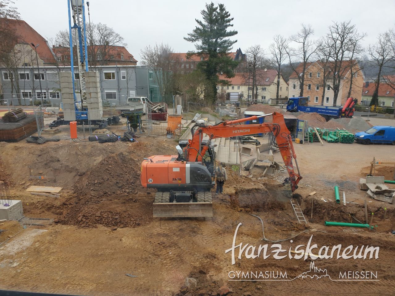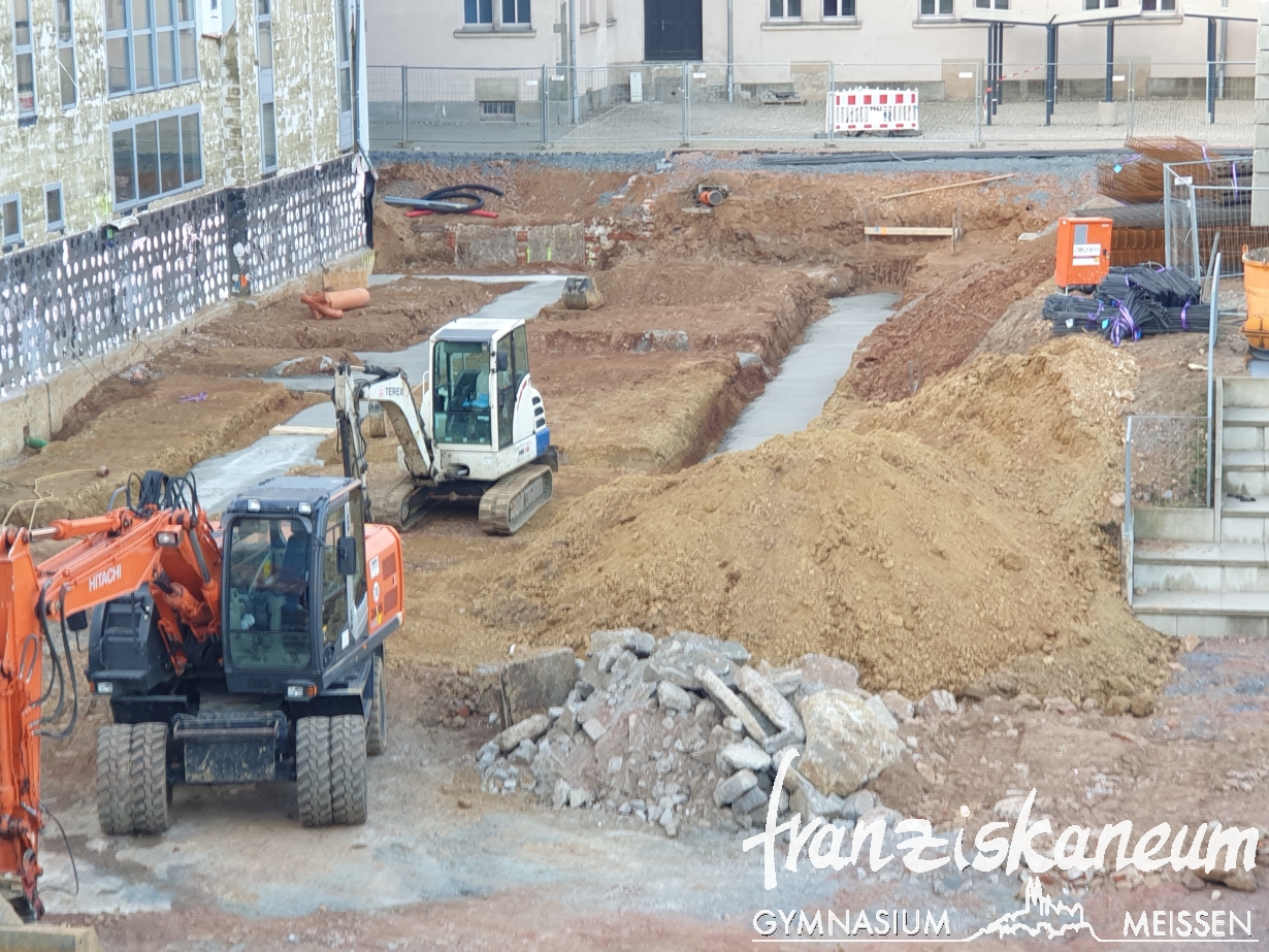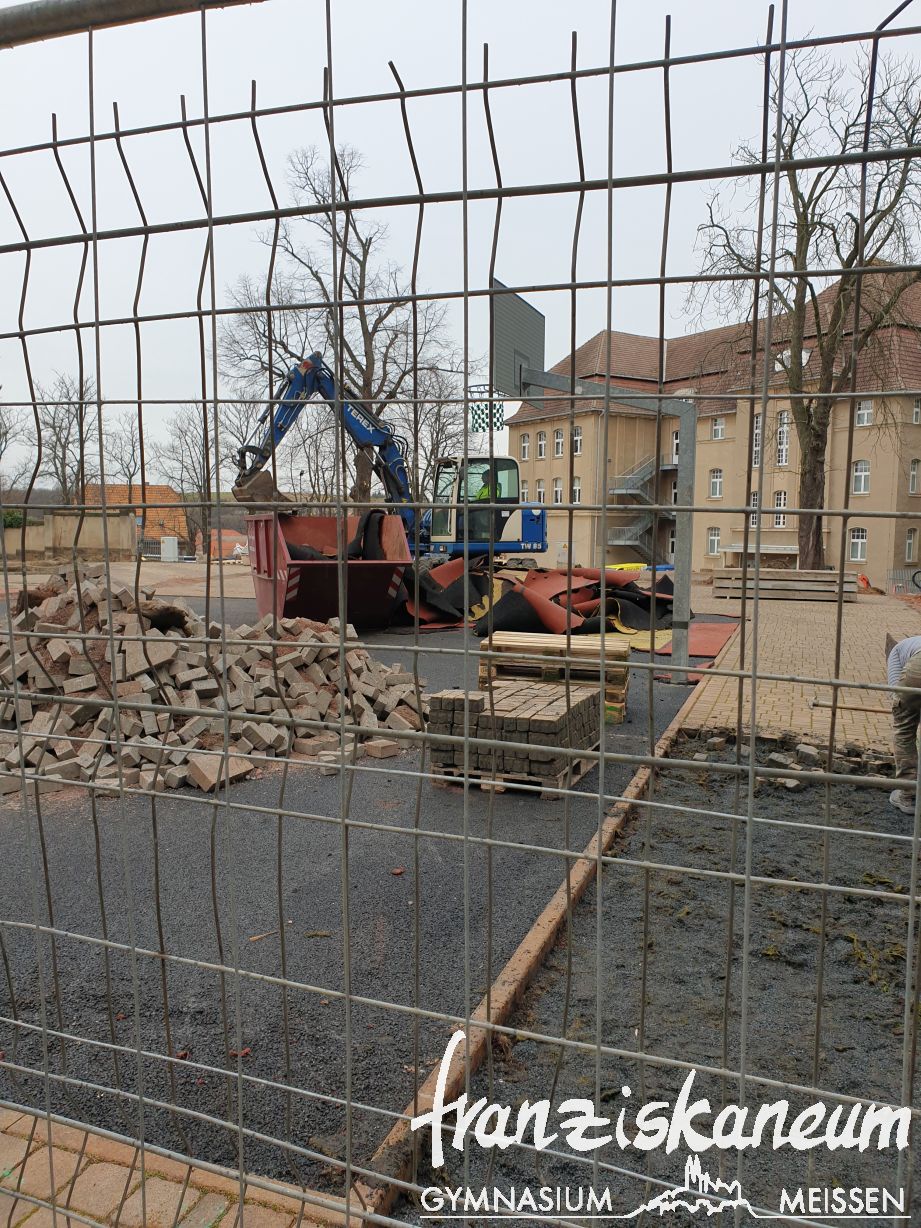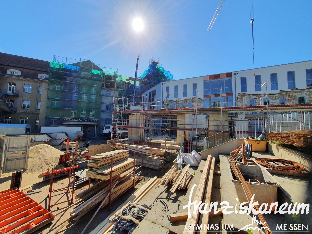 Seit den Winterferien 2022 ist auf dem Schulhof des Franziskaneums erneut eine Baustelle entstanden. Der Verbinderbau (B-Gebäude/Hauptgebäude) soll erweitert werden, so dass die Mensa ihre Platzkapazität mehr als verdoppeln kann. Weiterhin sollen in den oberen Etagen Fachkabinette für Physik, Chemie und Biologie entstehen. Hier wird das Baugeschehen in Bildern dokumentiert.