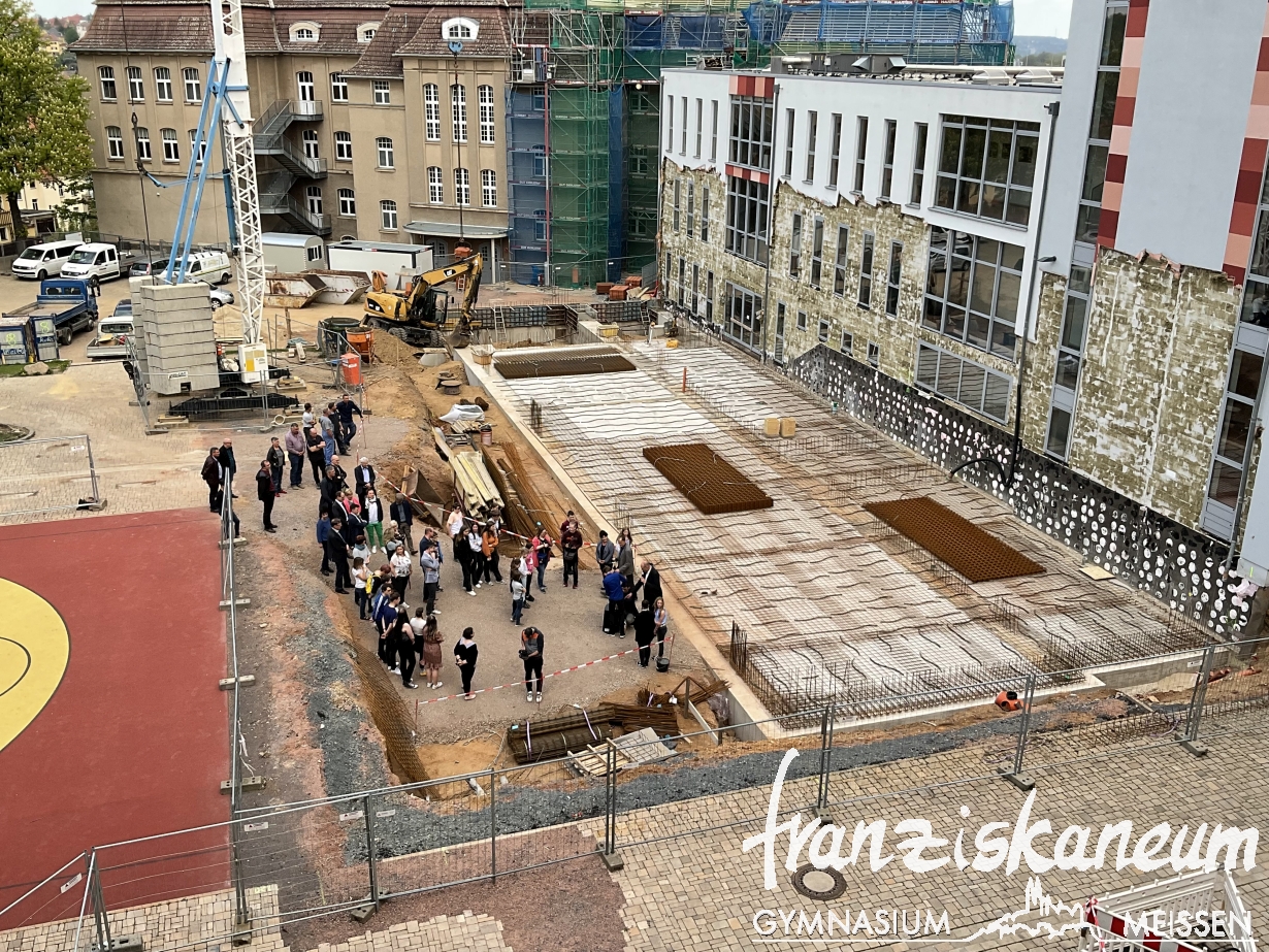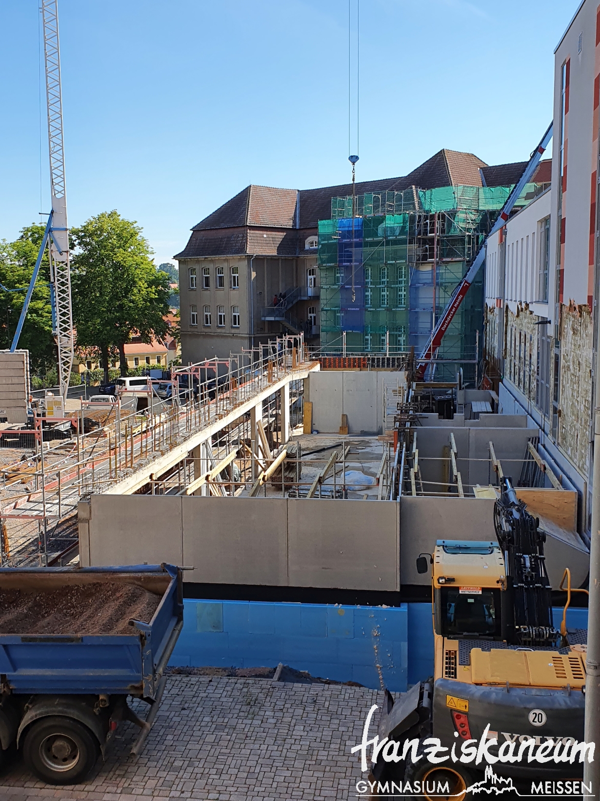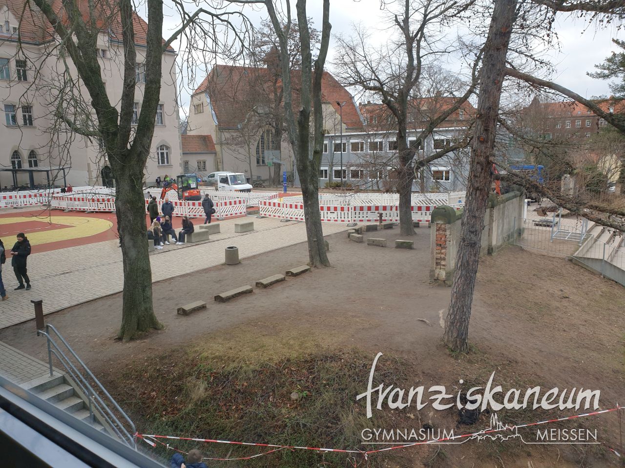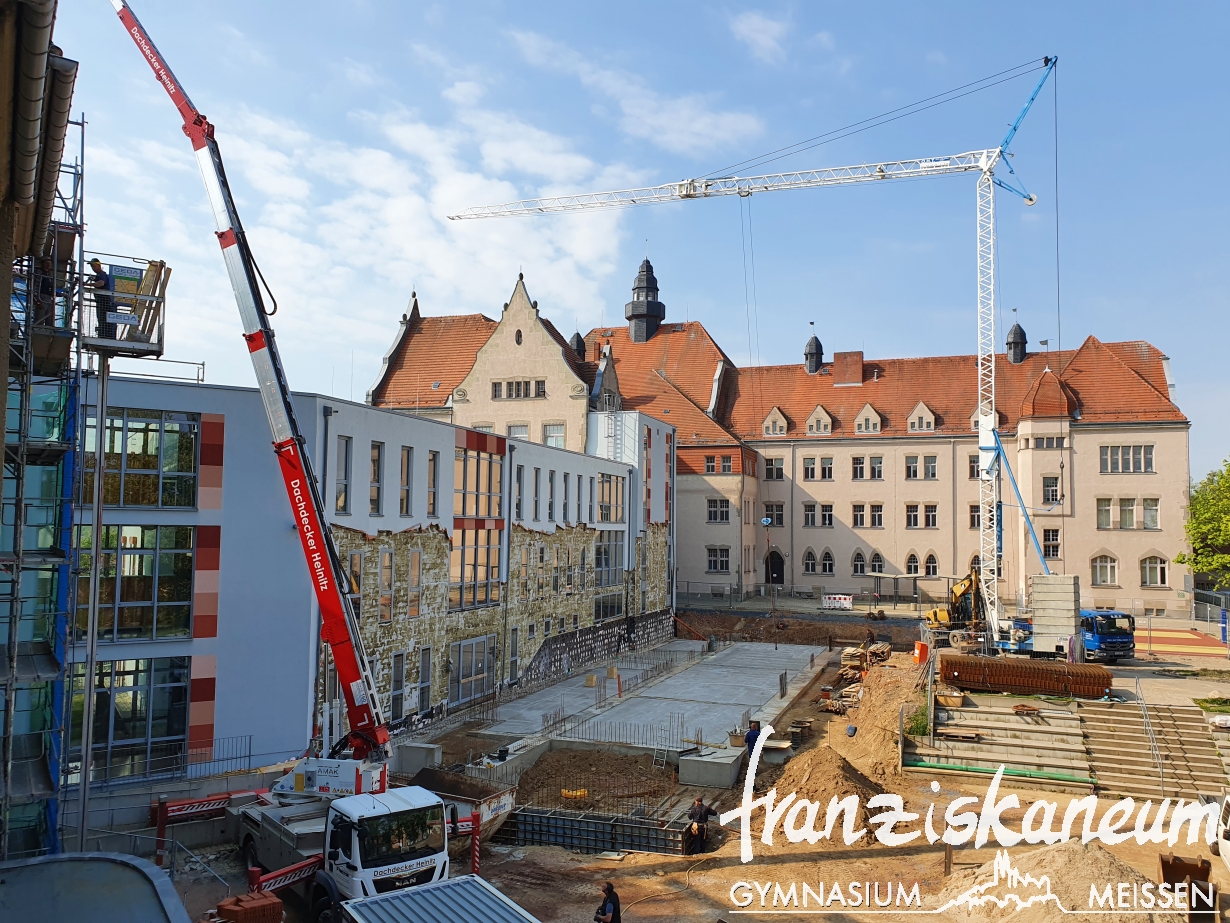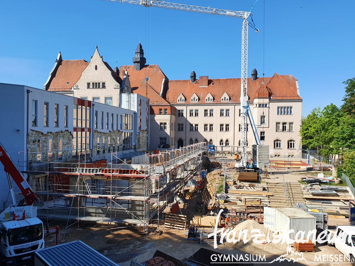 Seit den Winterferien 2022 ist auf dem Schulhof des Franziskaneums erneut eine Baustelle entstanden. Der Verbinderbau (B-Gebäude/Hauptgebäude) soll erweitert werden, so dass die Mensa ihre Platzkapazität mehr als verdoppeln kann. Weiterhin sollen in den oberen Etagen Fachkabinette für Physik, Chemie und Biologie entstehen. Hier wird das Baugeschehen in Bildern dokumentiert.