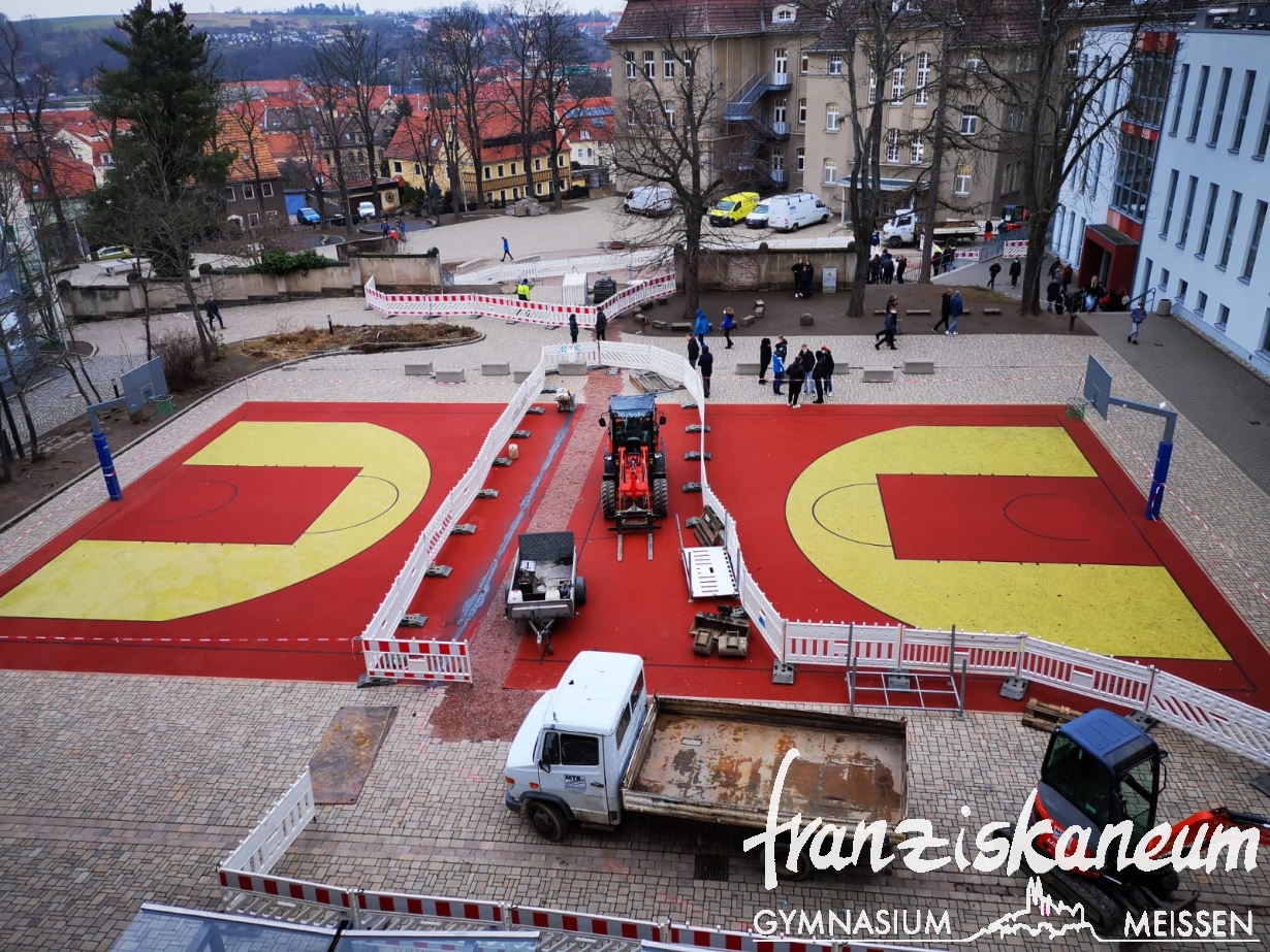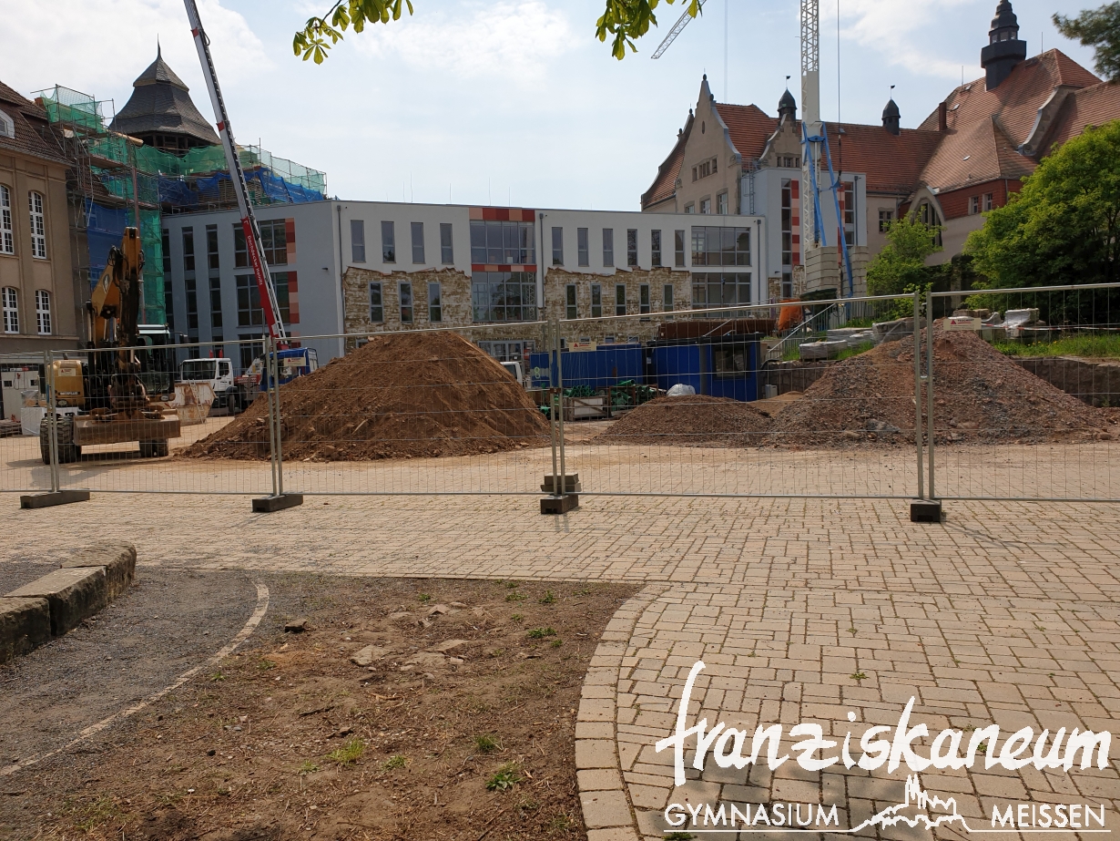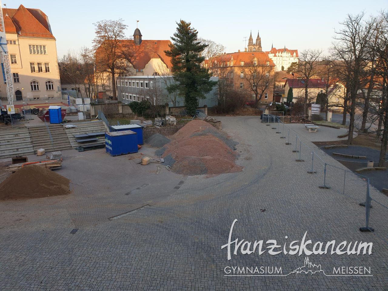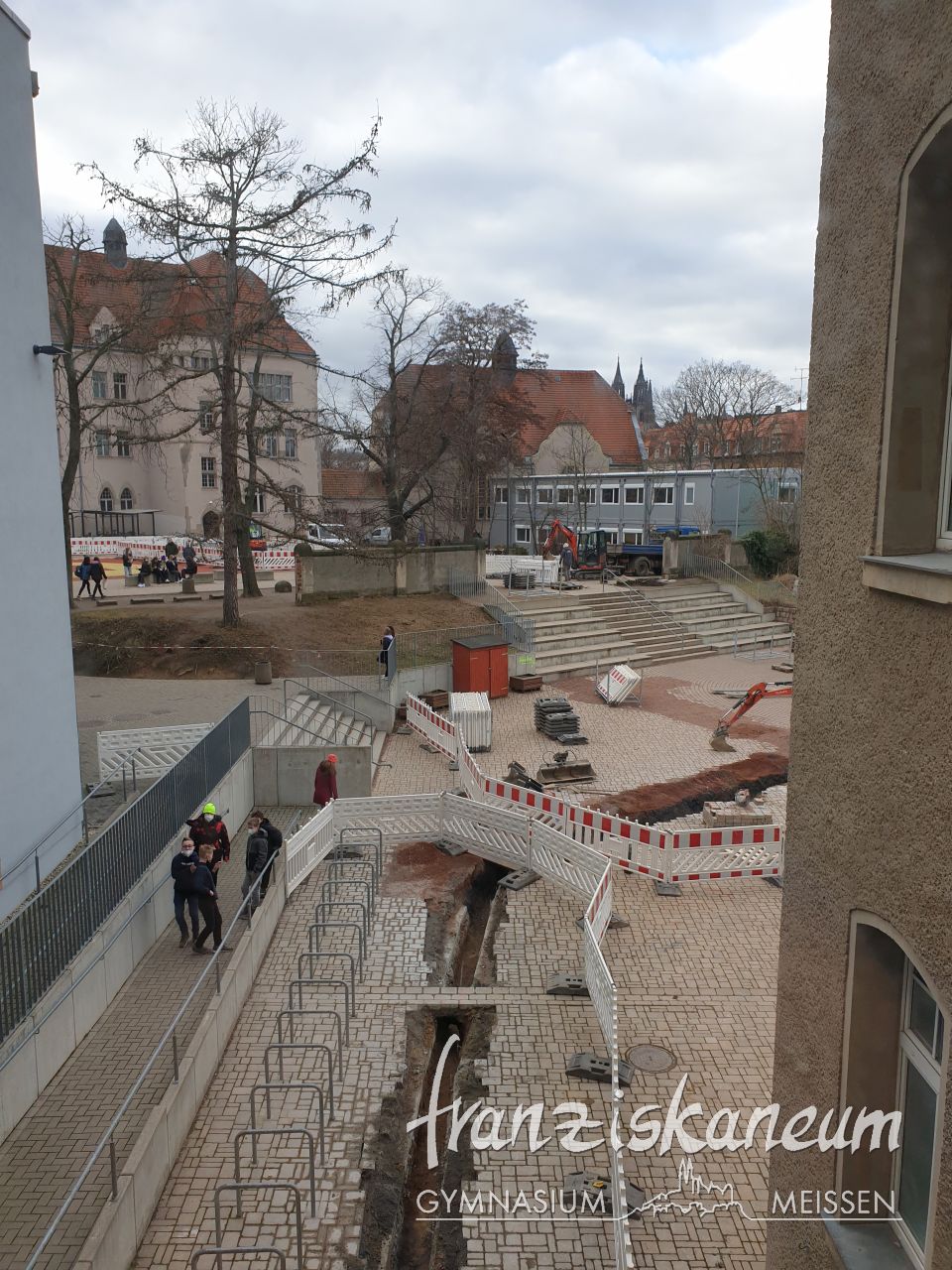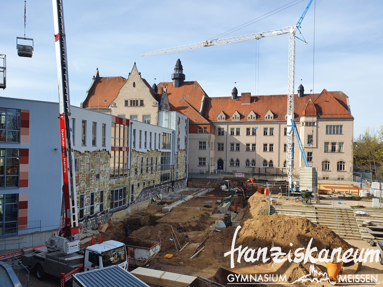 Seit den Winterferien 2022 ist auf dem Schulhof des Franziskaneums erneut eine Baustelle entstanden. Der Verbinderbau (B-Gebäude/Hauptgebäude) soll erweitert werden, so dass die Mensa ihre Platzkapazität mehr als verdoppeln kann. Weiterhin sollen in den oberen Etagen Fachkabinette für Physik, Chemie und Biologie entstehen. Hier wird das Baugeschehen in Bildern dokumentiert.