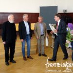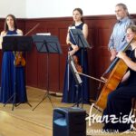 Das Ensemble „FOURtissimo“, mit Sandra Bohrig (Violoncello) Susanne Knappe (Violine) Roland Vetters (Klarinette), Holger Miersch (Klavier) und als besonderer Gast Julia Knappe an der Violine, Schülerin des Musikgymnasium Dresden begeisterten das Publikum mit einer musikalischen Weltreise. Werke von Jean Sibelius, Johannes Brahms, Henryk Wieniawski …. und die Vielfalt der Darbietungen, besonders die Stücke mit der 16-jährigen Geigerin Julia Knappe boten einen würdigen Rahmen für die Einweihung der Akustik -Decke und der Prämierung des Franziskaners des Jahres 2021.