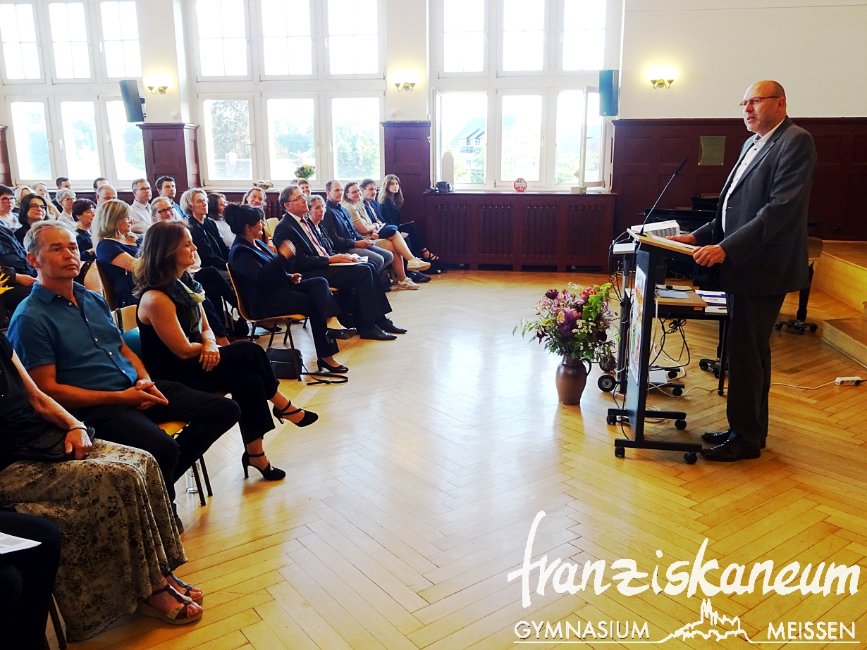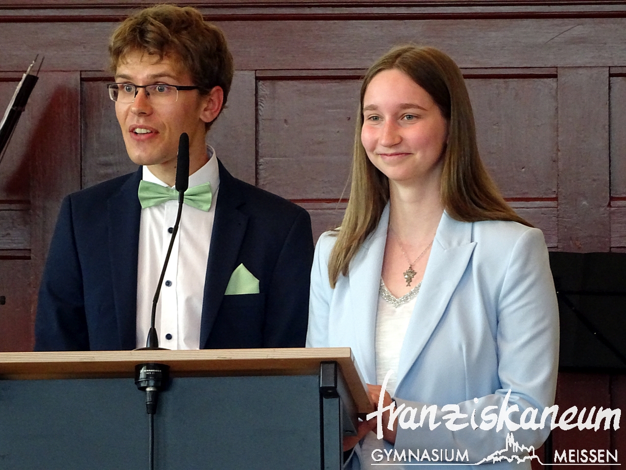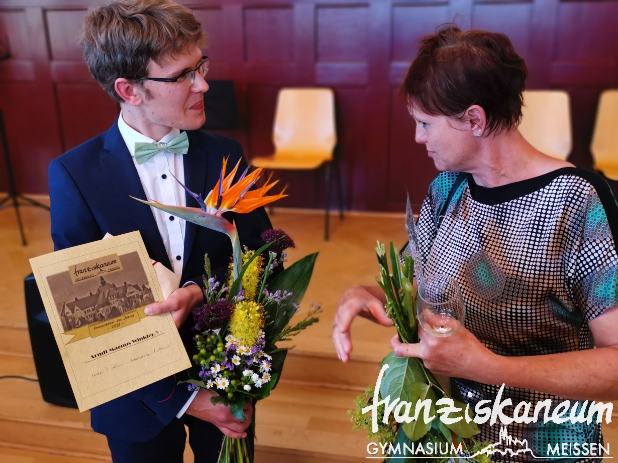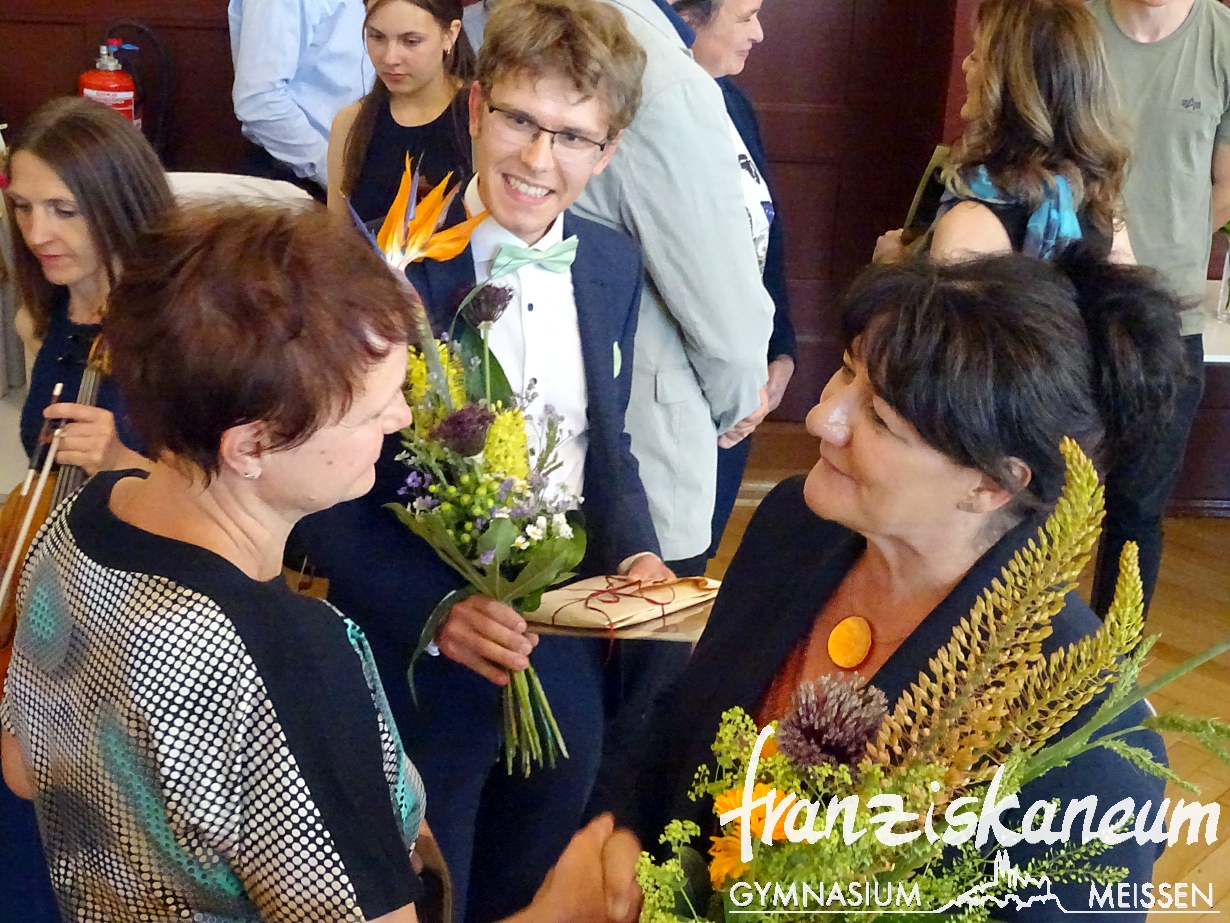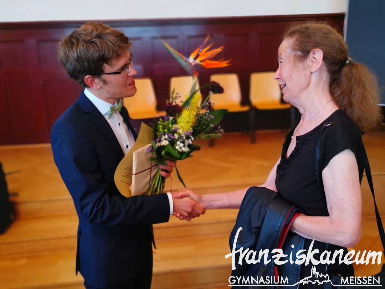 Das Ensemble „FOURtissimo“, mit Sandra Bohrig (Violoncello) Susanne Knappe (Violine) Roland Vetters (Klarinette), Holger Miersch (Klavier) und als besonderer Gast Julia Knappe an der Violine, Schülerin des Musikgymnasium Dresden begeisterten das Publikum mit einer musikalischen Weltreise. Werke von Jean Sibelius, Johannes Brahms, Henryk Wieniawski …. und die Vielfalt der Darbietungen, besonders die Stücke mit der 16-jährigen Geigerin Julia Knappe boten einen würdigen Rahmen für die Einweihung der Akustik -Decke und der Prämierung des Franziskaners des Jahres 2021.
