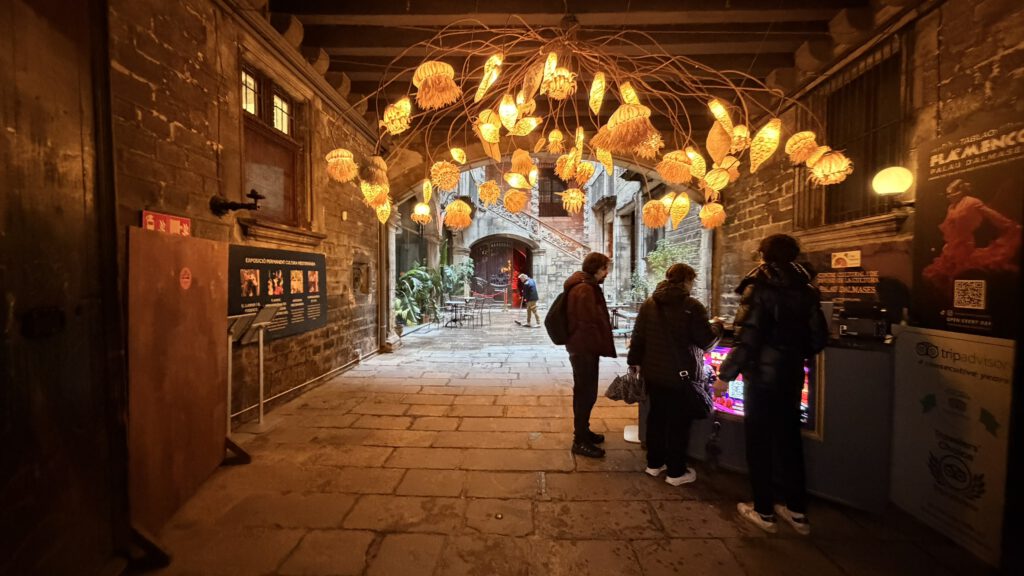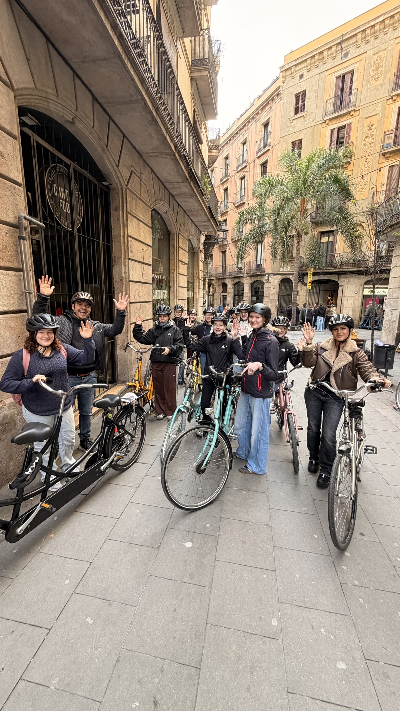 Der Montag startete sportlich mit einer dreistündigen Fahrradtour. Wir rollten über die Plaça de Catalunya, unter dem Arc de Triomf hindurch bis an den Strand, wo die Sonne sofort Urlaubsgefühle weckte. Danach stöberten wir auf dem Mercat dels Encants zwischen alten Kameras, Büchern und allerlei Kuriositäten. Später froren uns auf der Bootstour im Hafen die Zehen ein, doch die neue Perspektive auf die Skyline war es wert. Anschließend wärmten wir uns in der Macchina Pasta Bar auf und schlenderten durch schmale, hell erleuchtete Gassen – eine primera noche, die sich schon wie Ferien anfühlte.