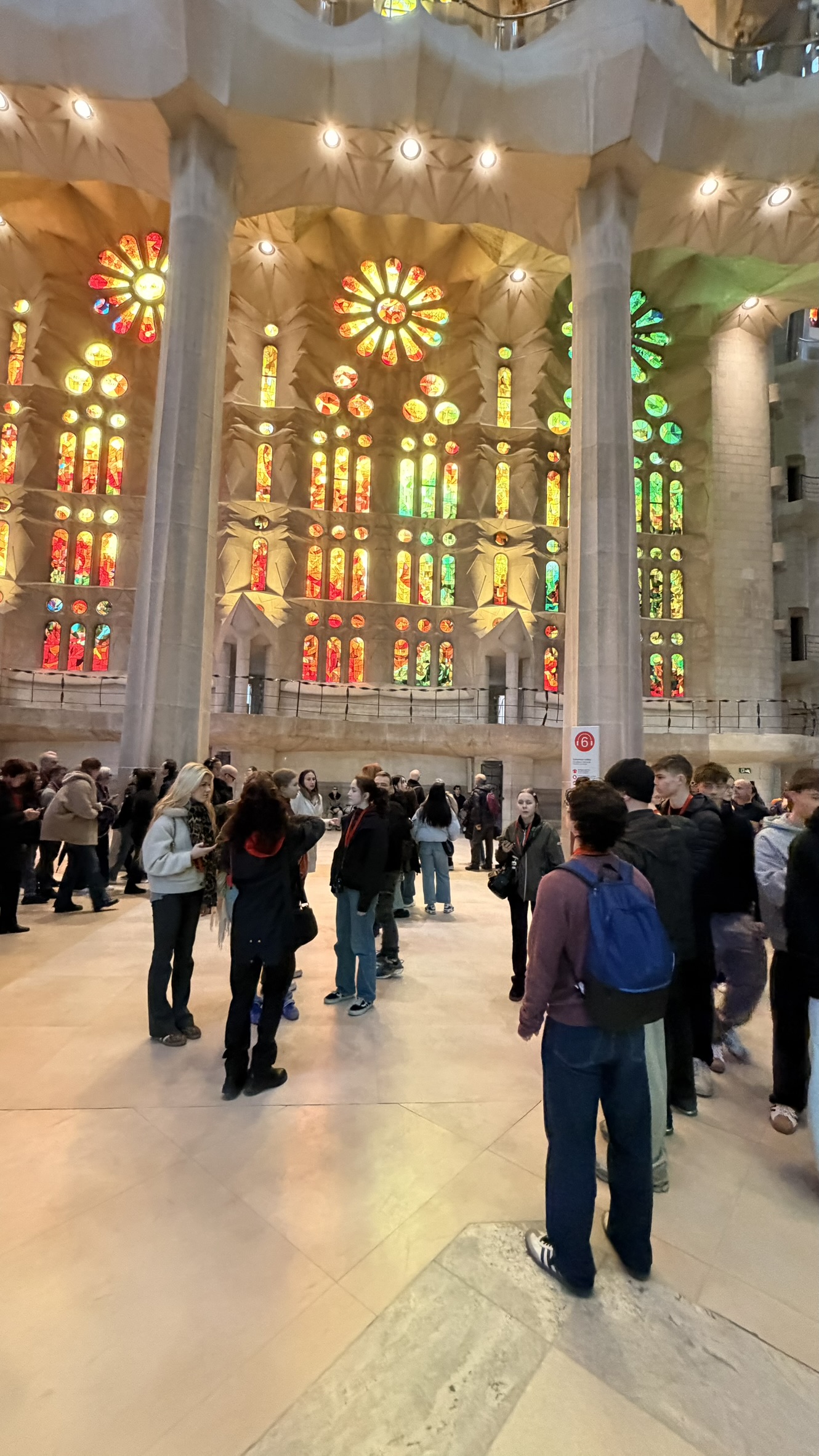 Mittwoch, der 28.01.2026, stand im Zeichen der Sagrada Família. Während der Führung staunten wir über Gaudís Detailversessenheit: Der höchste Turm steht für Jesús, die übrigen tragen eigene Bedeutungen. Am Nachmittag teilten wir uns in kleine Gruppen. Unsere Gruppe nahm den Tibidabo ins Visier, wurde jedoch von heftigem Regen überrascht, kehrte um und stärkte sich erst einmal, bevor es ins Gotische Viertel ging. Später spielten wir im Hostel Billard. Der Plan, das Barça-Spiel in einer Sportsbar zu schauen, scheiterte an “reservado”, also verlegten wir unseren Fanclub kurzerhand an den Billardtisch.